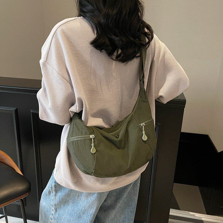 日系超轻尼龙布包男女百搭单肩斜挎包多功能轻便大容量牛角包
