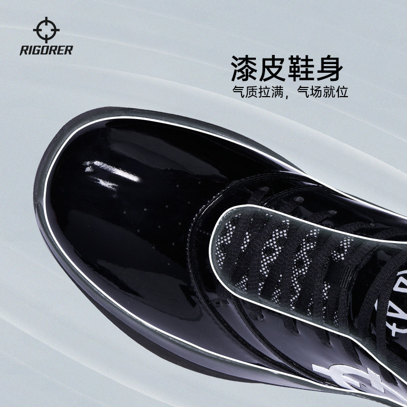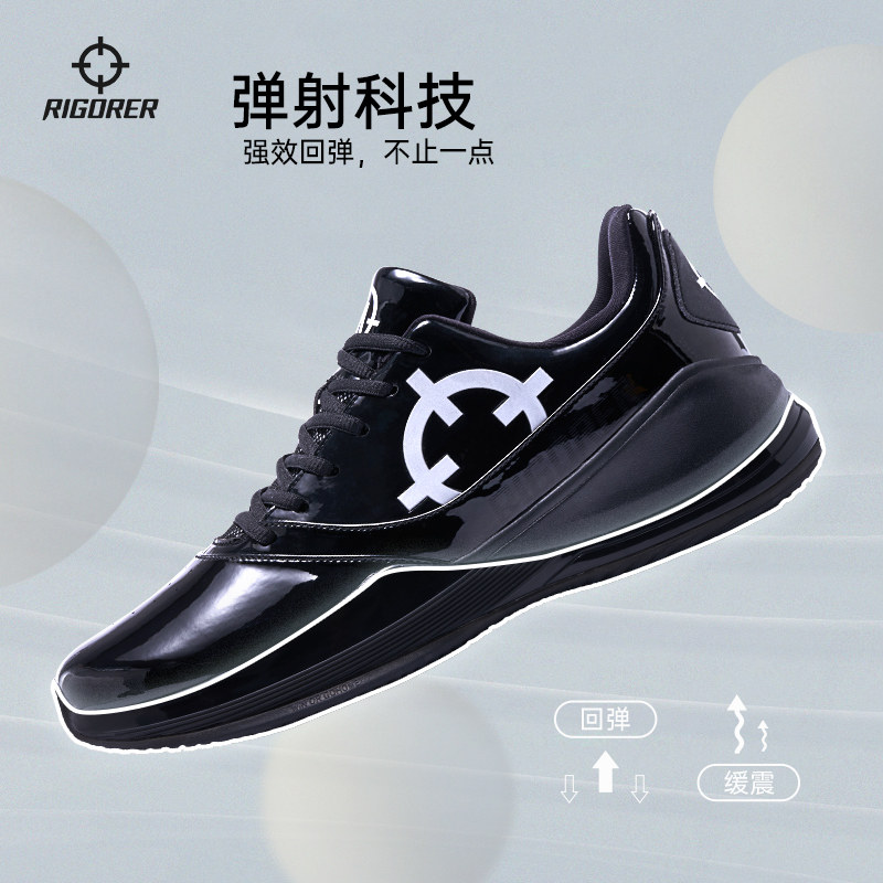 准者2026新款裁判鞋黑色漆皮亮面低帮篮球鞋运动鞋专业耐磨教练鞋