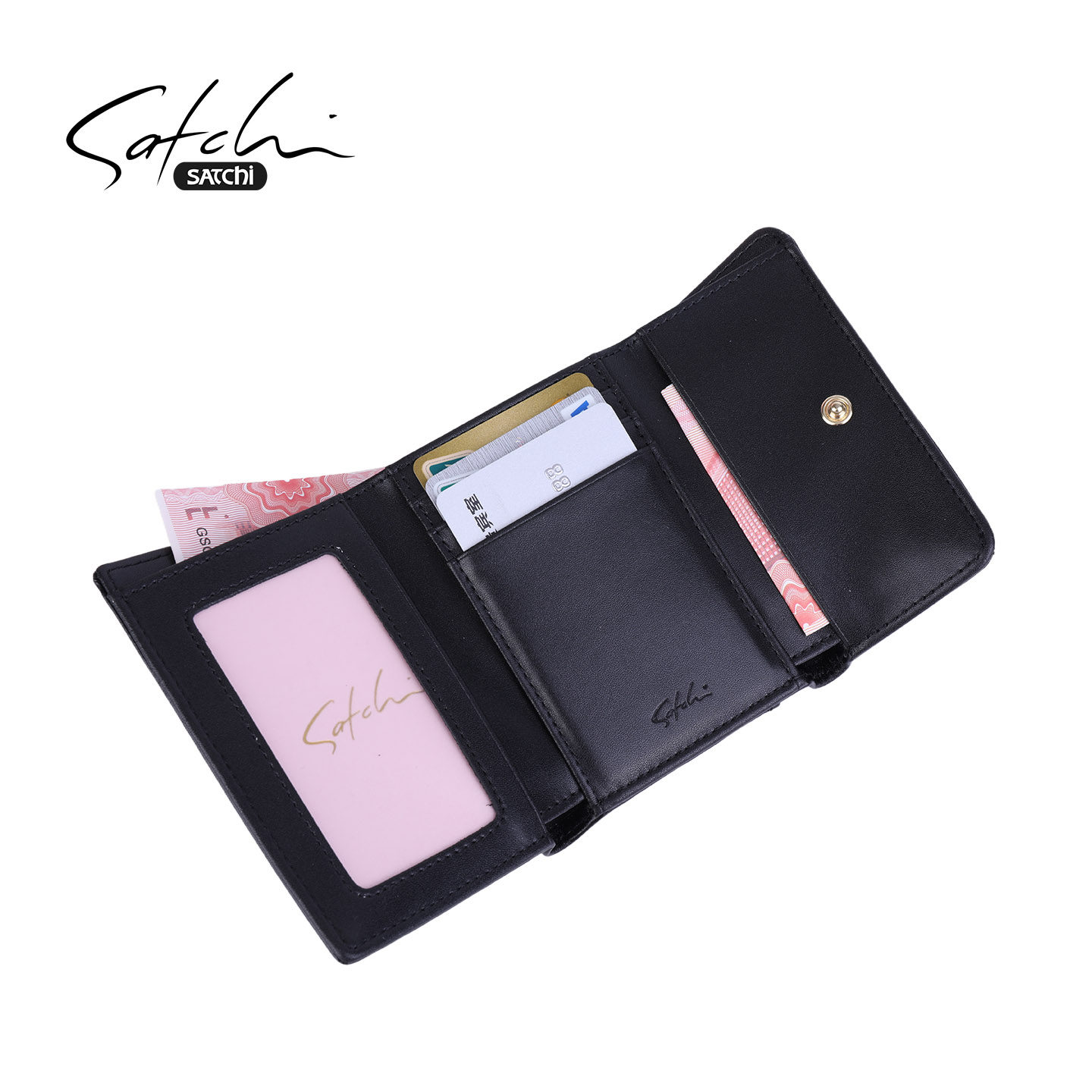 沙驰钱包女款新款时尚轻奢百搭牛皮短款钱夹竖款真皮皮夹零钱包潮