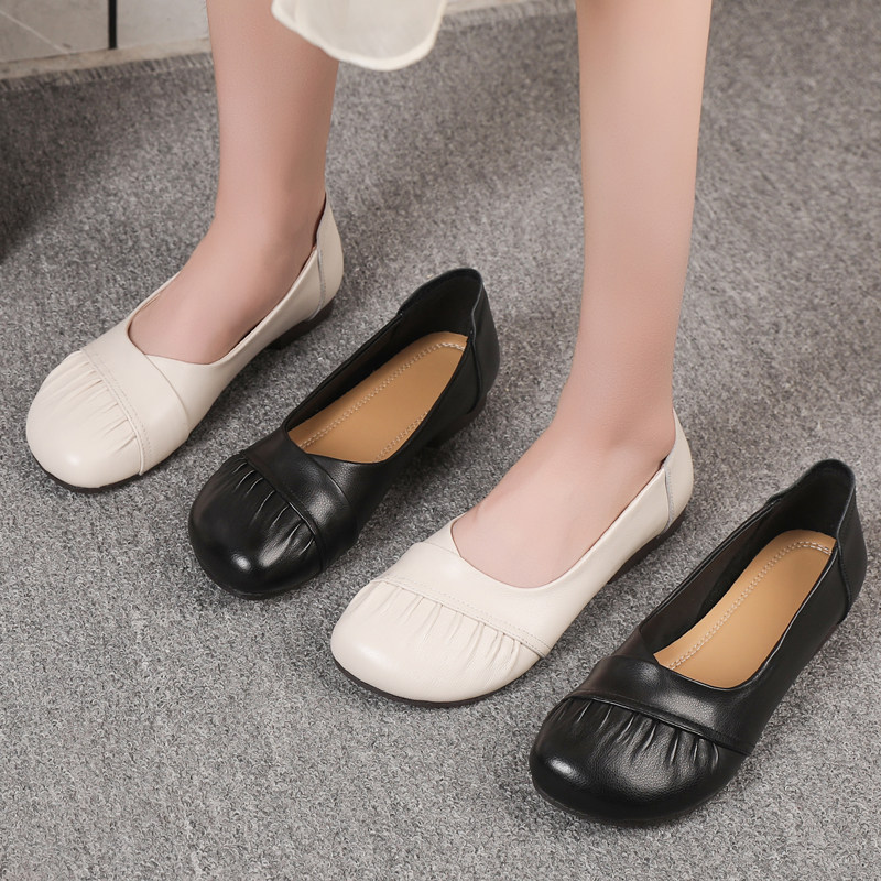 2026春夏新款真皮浅口单鞋女平底软底舒适不累脚百搭中老年妈妈鞋