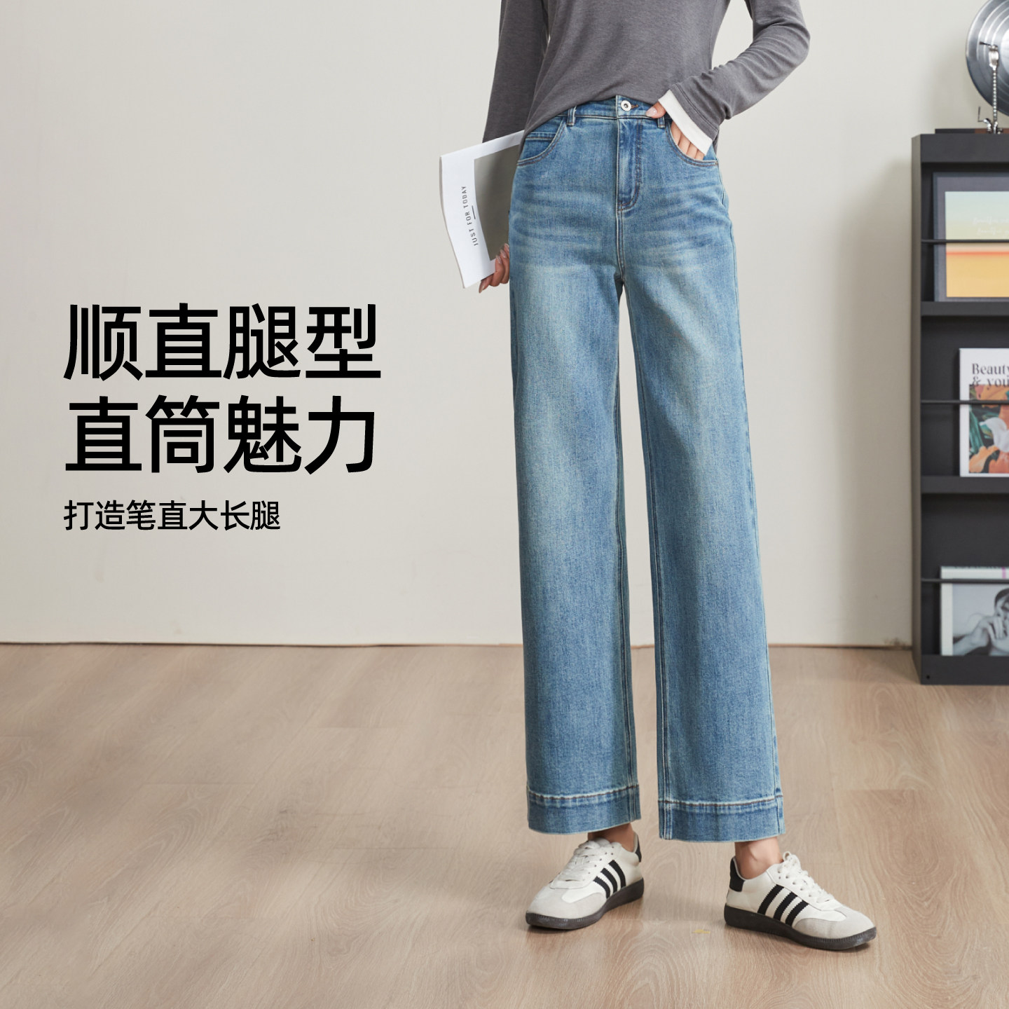 逸阳宽边九分直筒牛仔裤女小个子2026春夏薄新款宽松显瘦烟管裤子