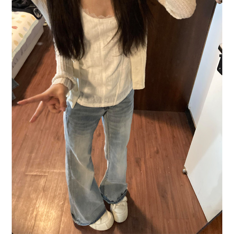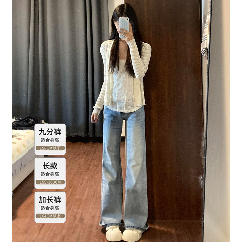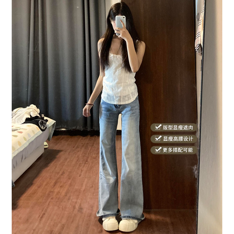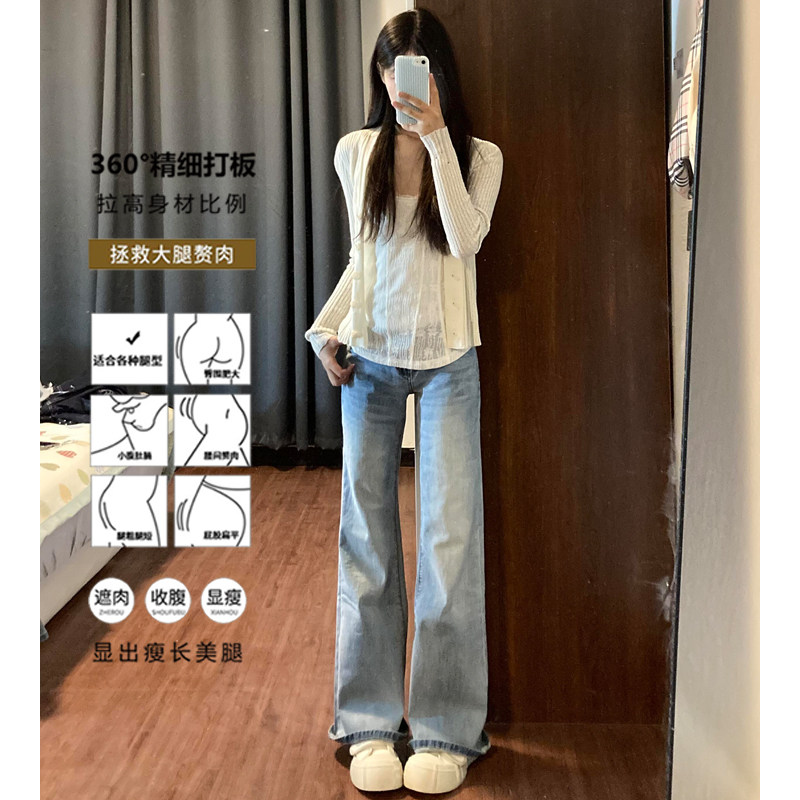 美式浅蓝色低腰不贴腿微喇牛仔裤女春季2026新款显瘦小个子直筒裤
