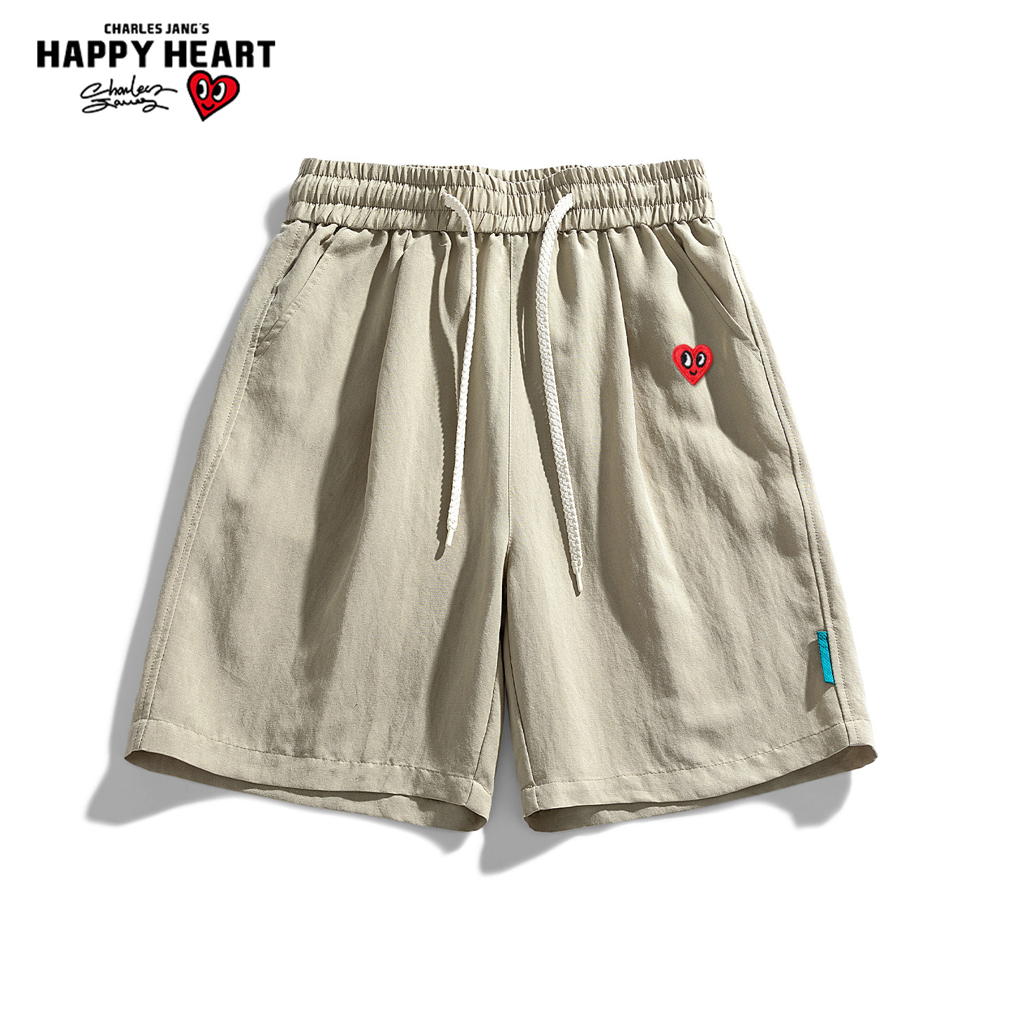查尔斯桃心美式老钱风亚麻短裤男款夏季薄款cleanfit慵懒风五分裤