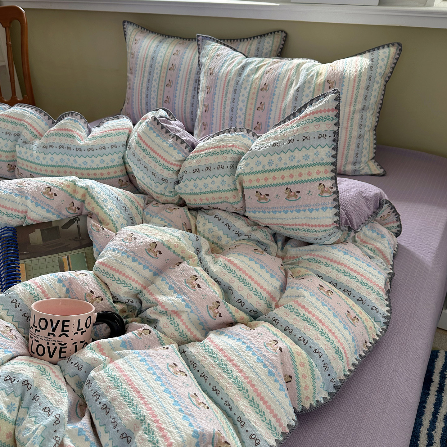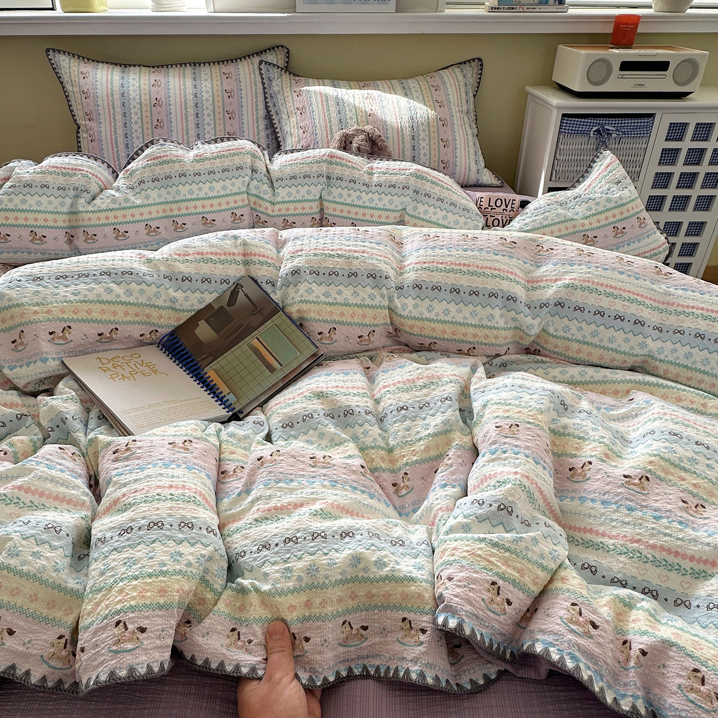 A类双层纱布四件套全棉纯棉被套被罩床笠床单新款学生宿舍三件套4
