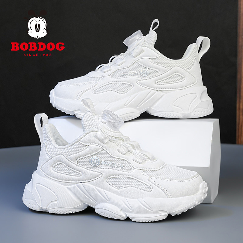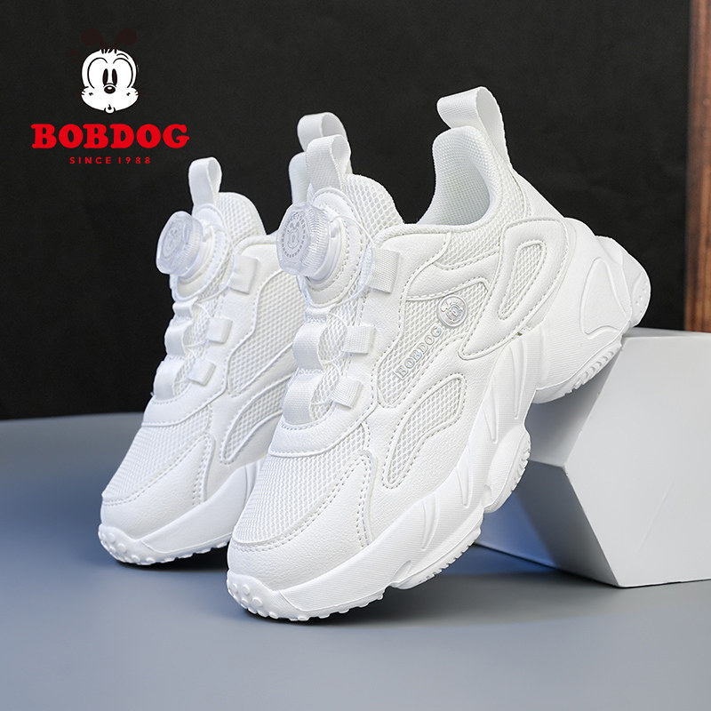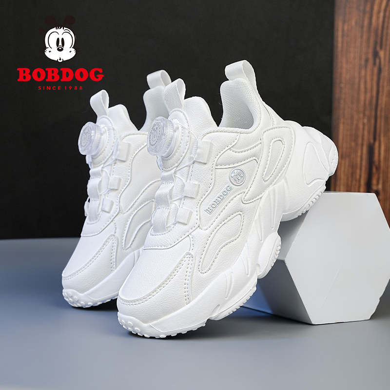 巴布豆童鞋小白鞋网面儿童2026新款男女童运动皮面白色校园表演春