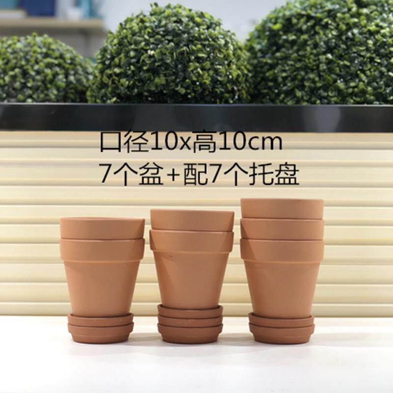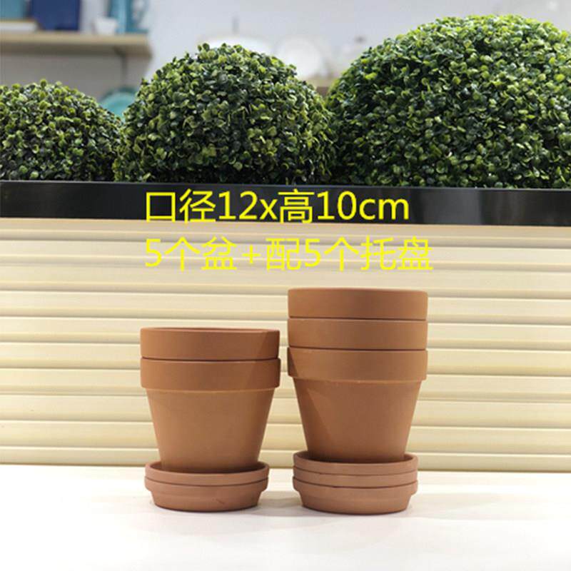 清仓高圆形红陶花盆带托盘透气透水种植盆简约粗陶土多肉盆特大号