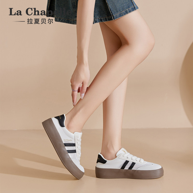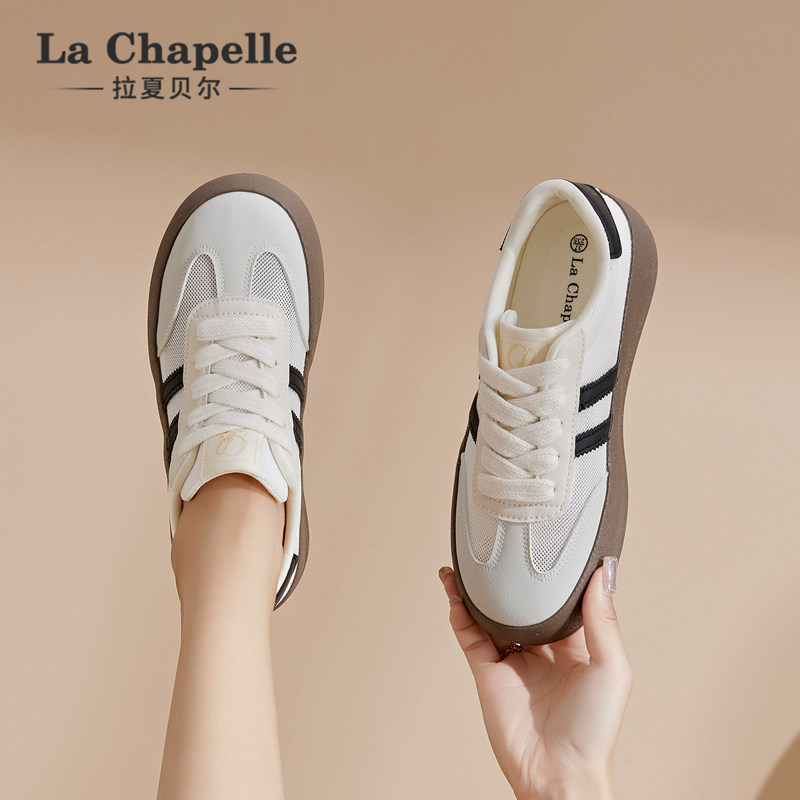 拉夏贝尔厚底德训鞋女2026春夏新款百搭网面透气休闲轻便运动板鞋