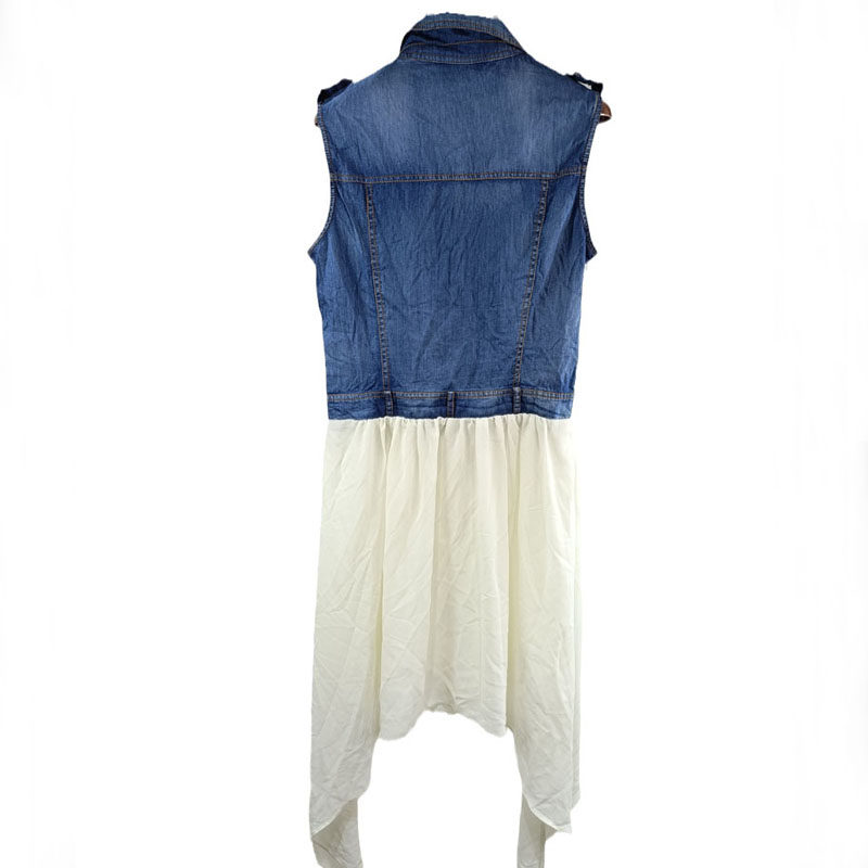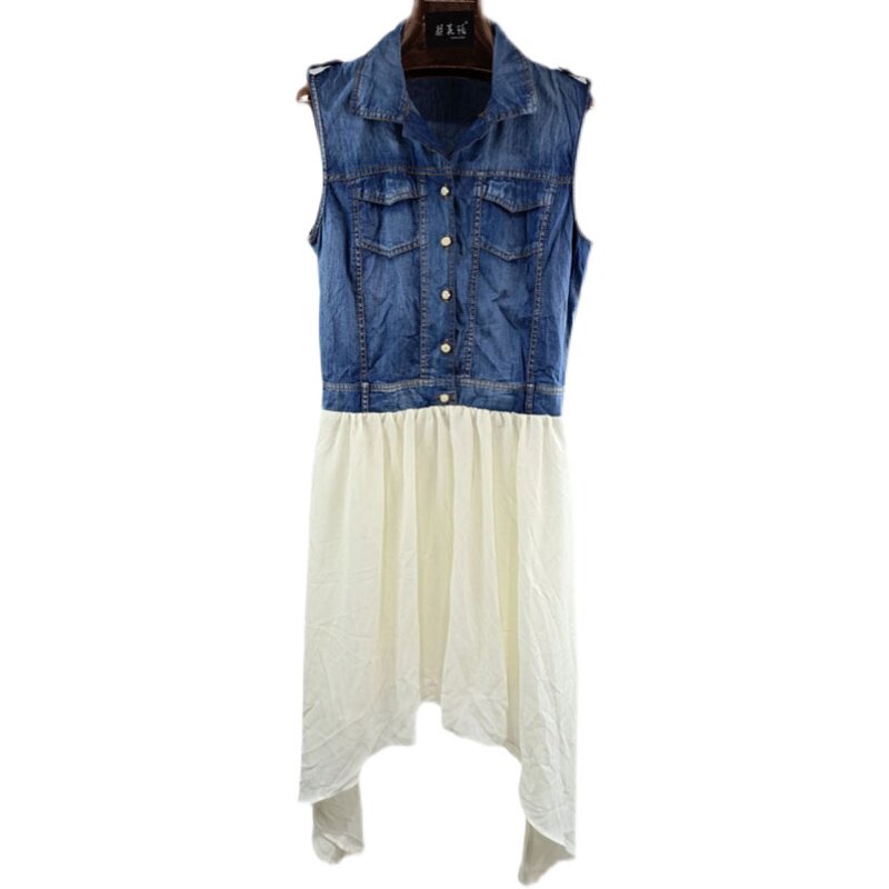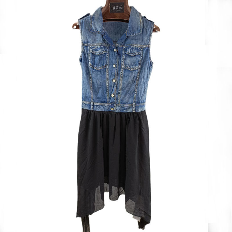 牛仔拼接无袖女中长款2025夏季新款修身减龄小个子炸街雪纺连衣裙