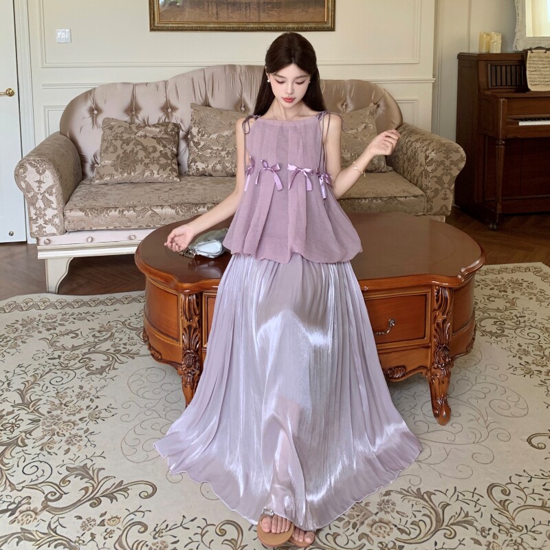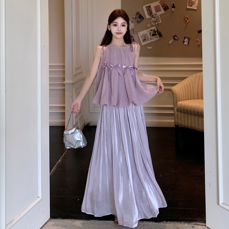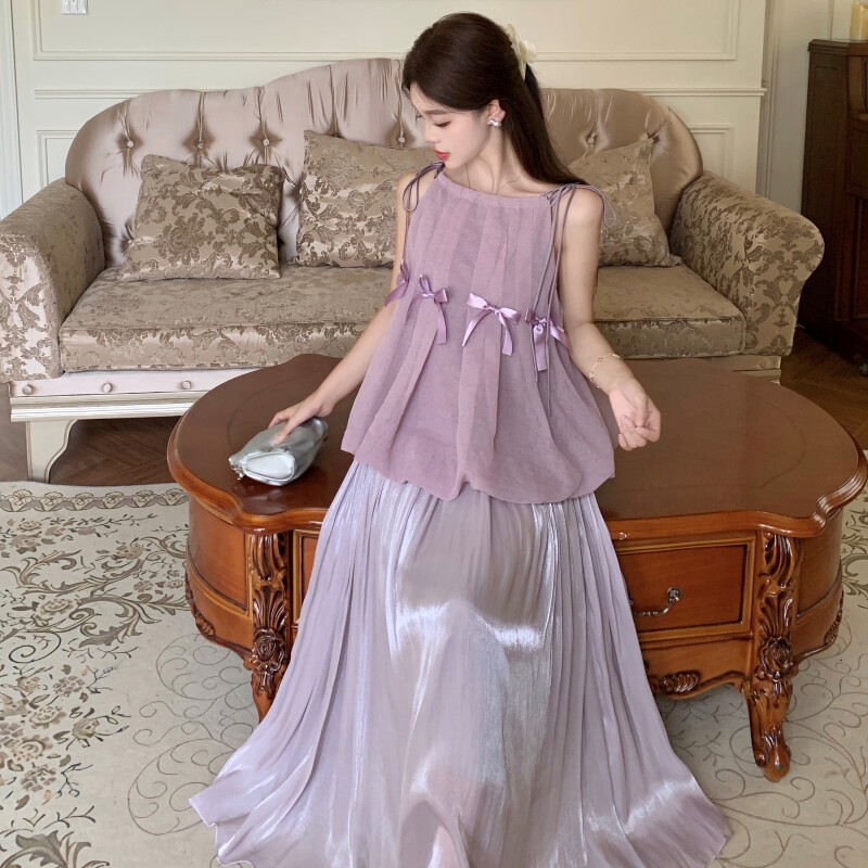 2026新款大码女装 夏装 蝴蝶结吊带上衣半身裙套装 无袖 轻奢显瘦