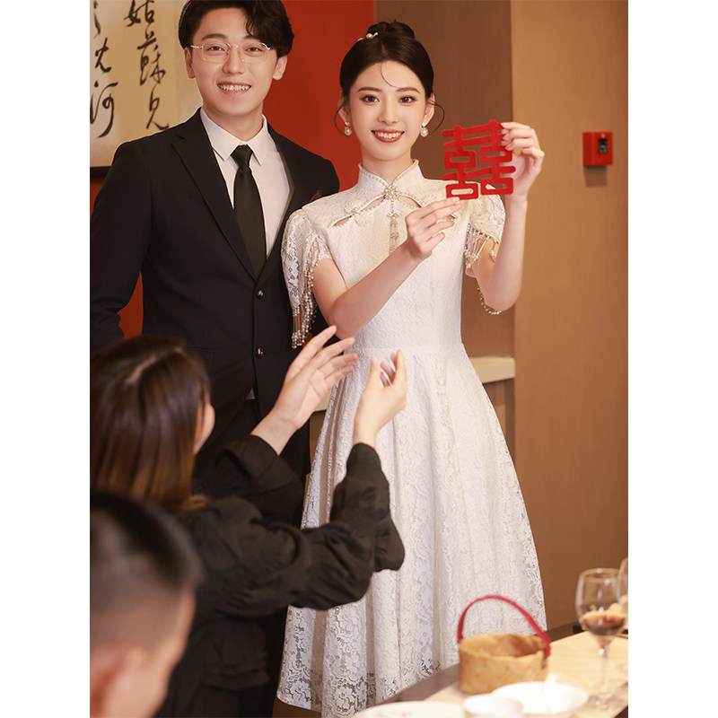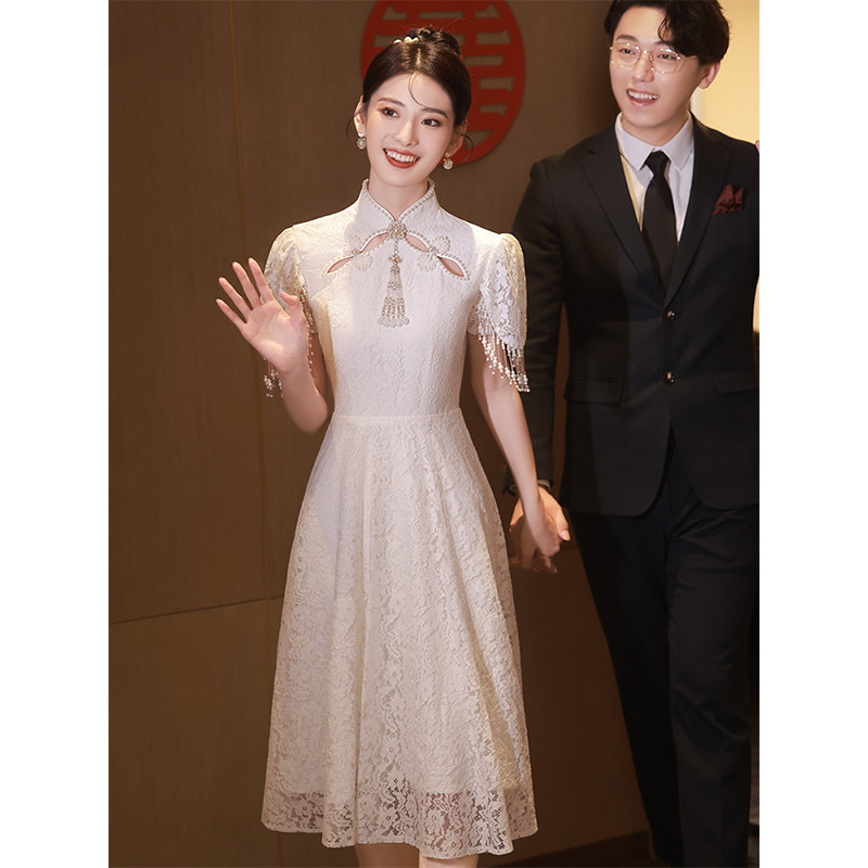 小个子领证登记旗袍2026年新款白色年轻款新娘订婚敬酒服连衣裙女