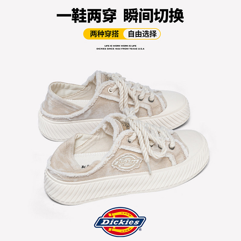 Dickies帆布鞋男款2026新款夏季透气男鞋半拖一脚蹬小白鞋板鞋男