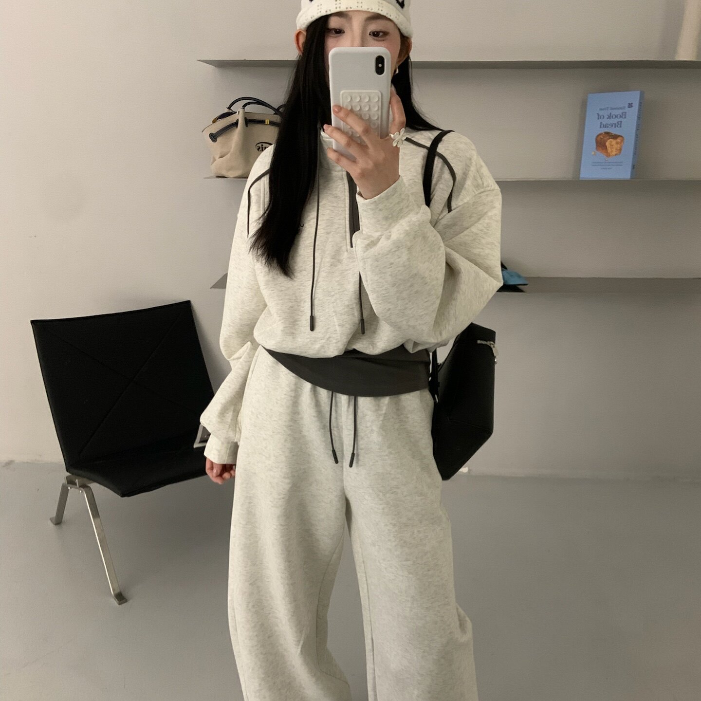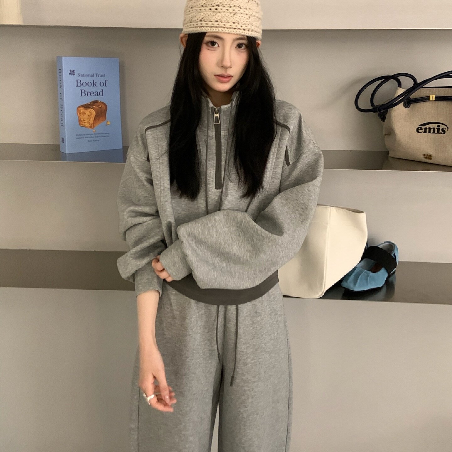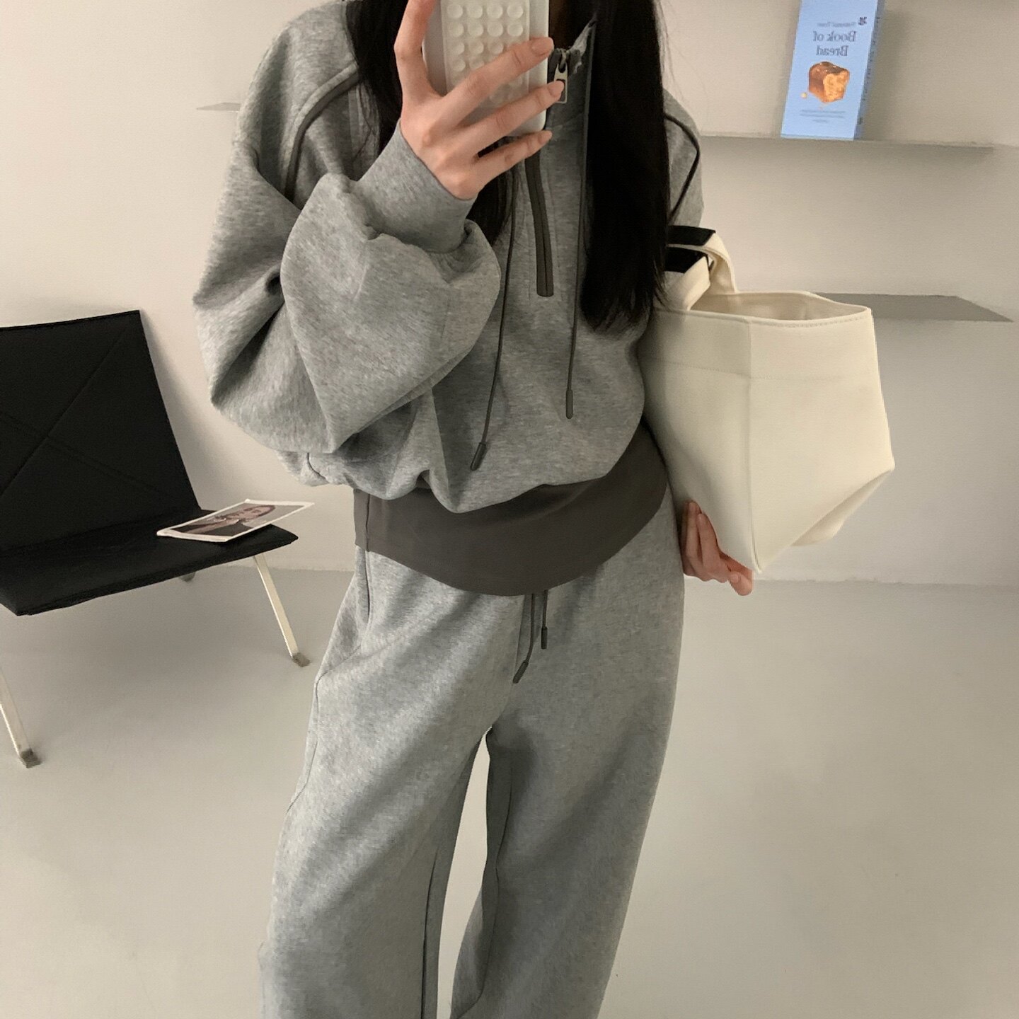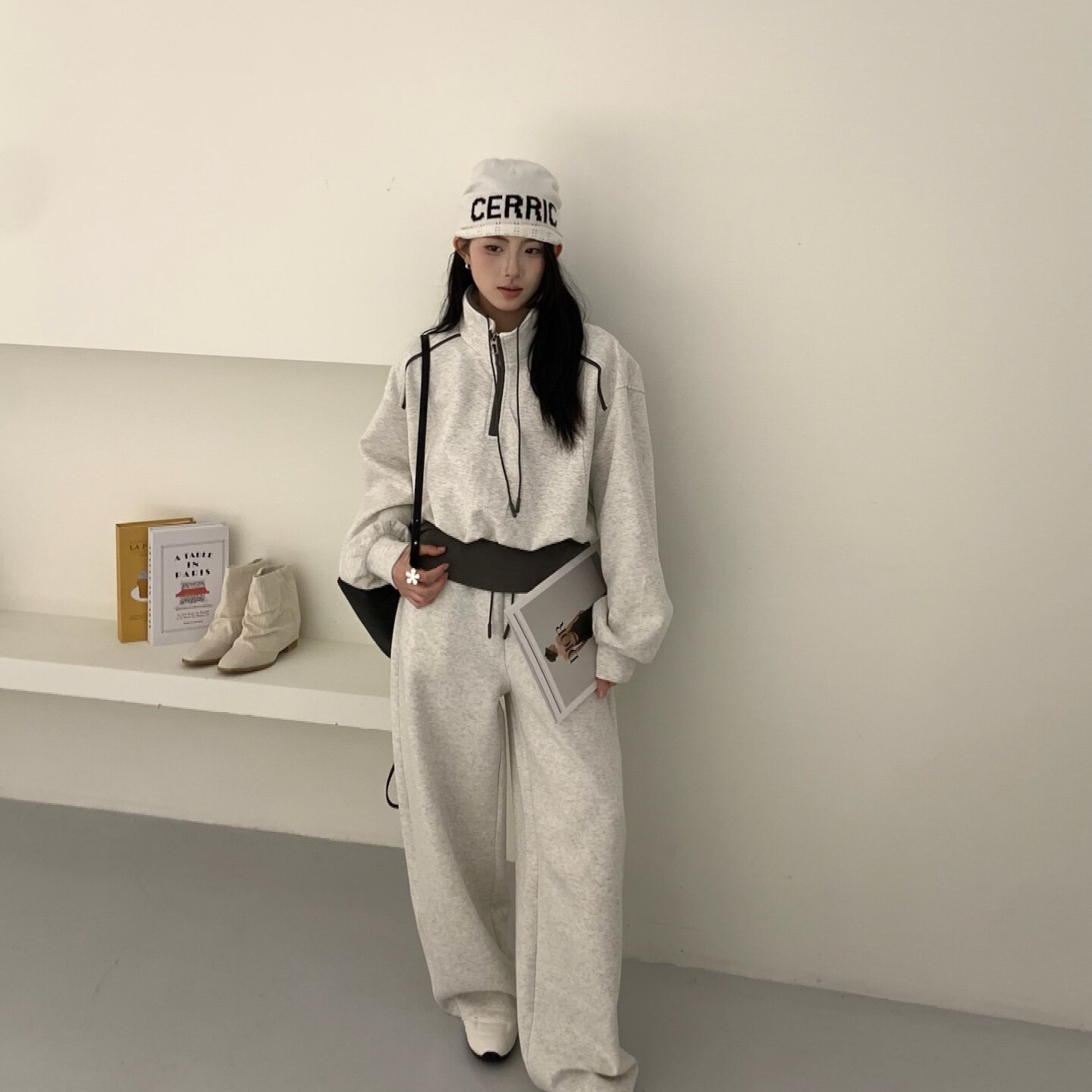2026春季新款韩系撞色休闲运动套装女半拉链立领卫衣阔腿裤两件套