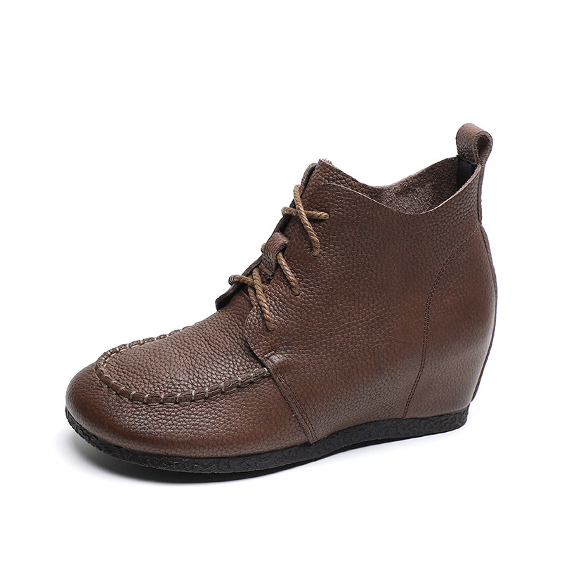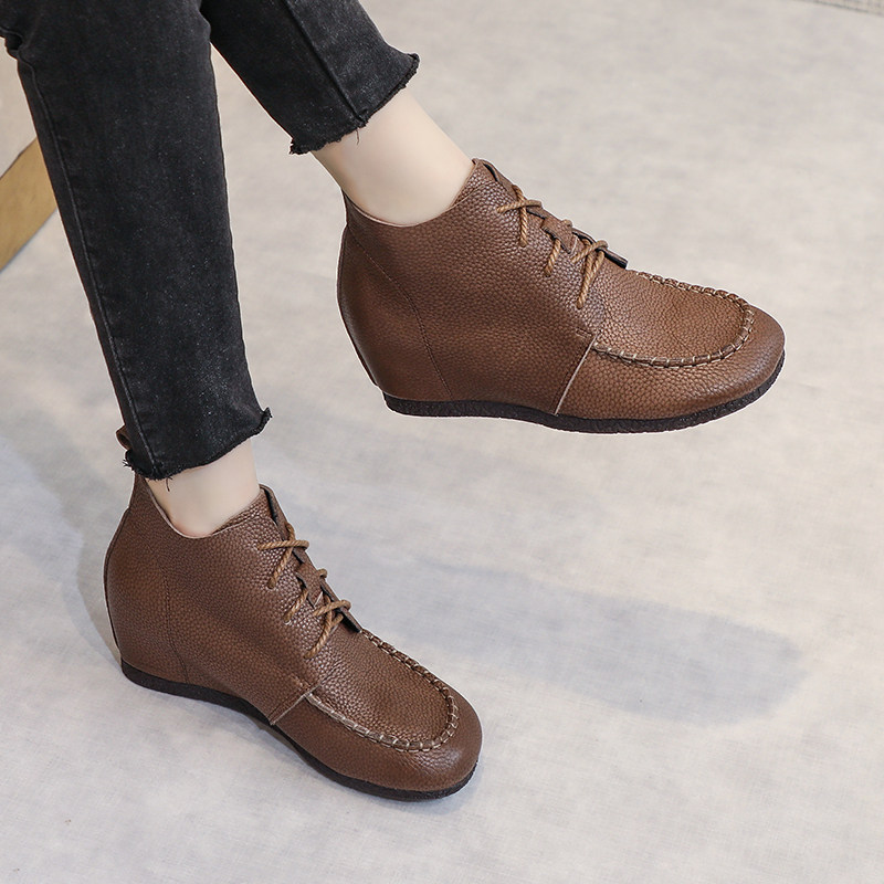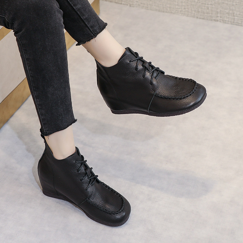 内增高马丁靴女2025年新款春秋显高显瘦真牛皮软底短靴手工复古