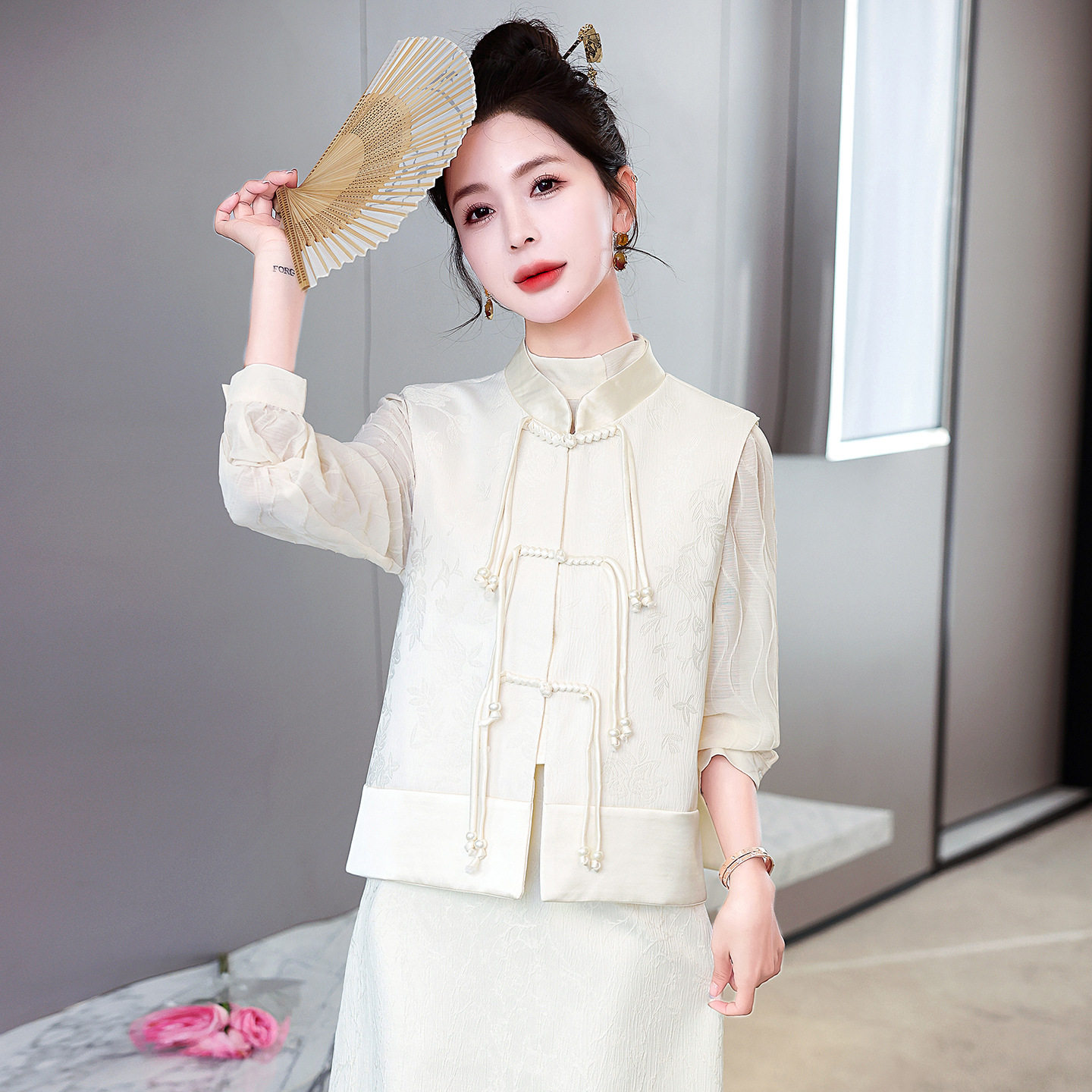 中式国风盘扣春2026提花新款女装马甲短款坎肩上衣背心复古HM2607