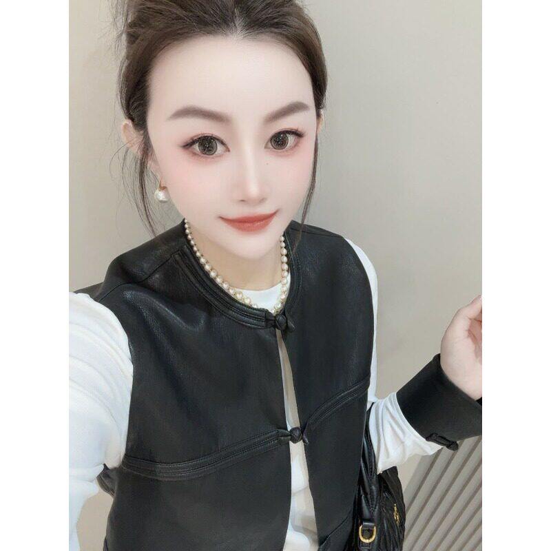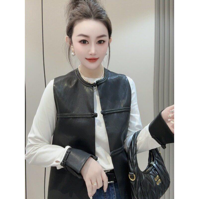 新中式国风PU皮马甲女2026春秋季新款气质宽松短款坎肩背心上衣潮
