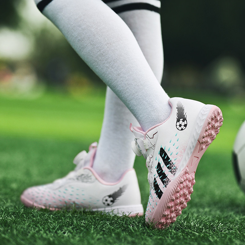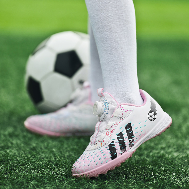 梅西儿童足球鞋女童女款专业旋转纽扣小学生女孩女生透气tf碎钉鞋