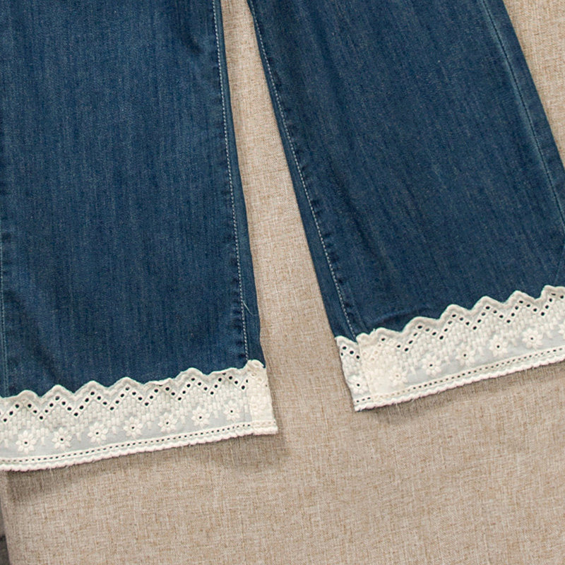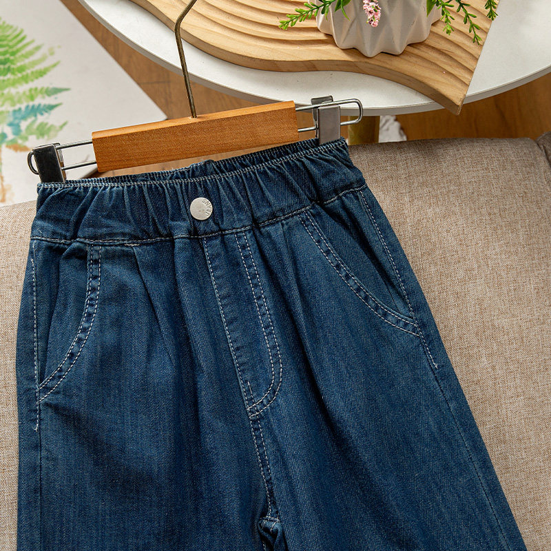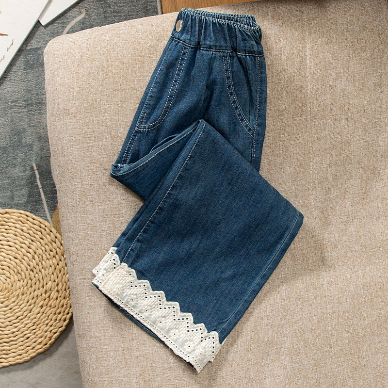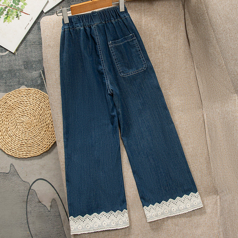 女童阔腿裤2026春夏新款韩版中大童花边牛仔裤夏季薄款直筒裤子
