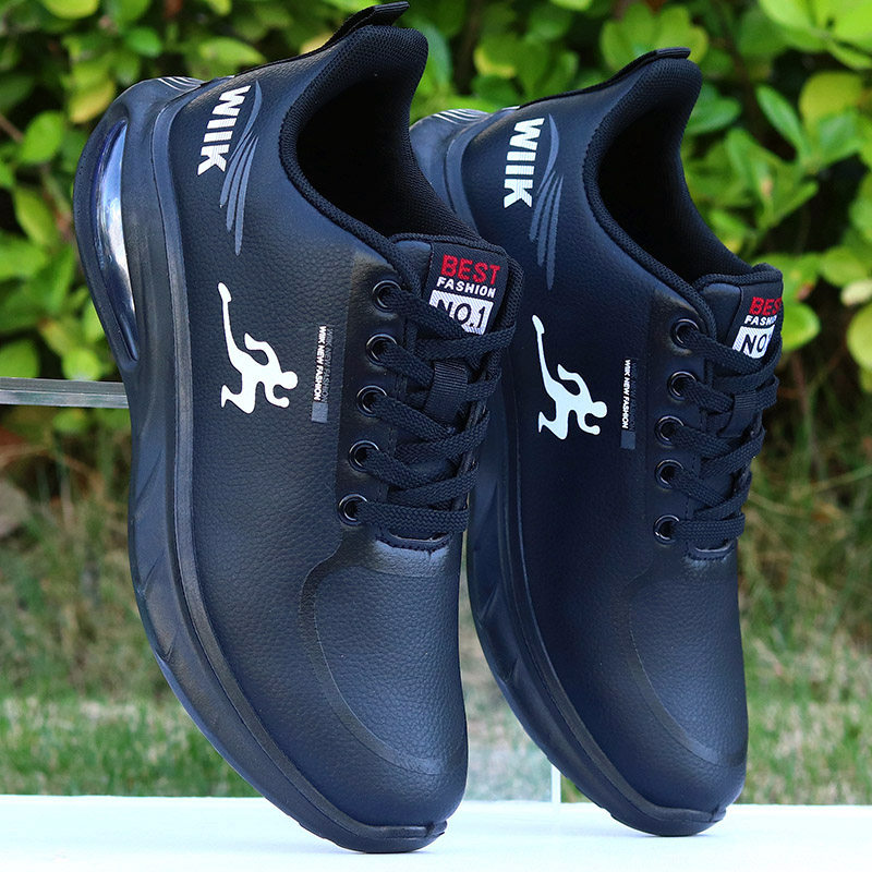 跑步鞋男款超轻减震气垫运动鞋皮面防水潮鞋子耐磨防臭休闲体育鞋