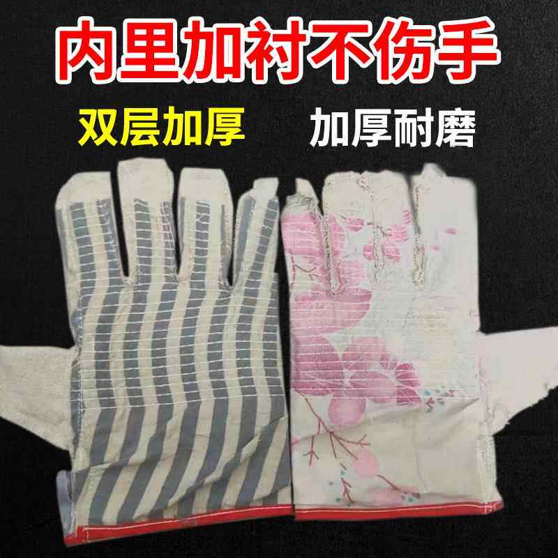 耐用劳保手套帆布手套双层24线全衬加厚电焊工作机械耐磨透气劳保