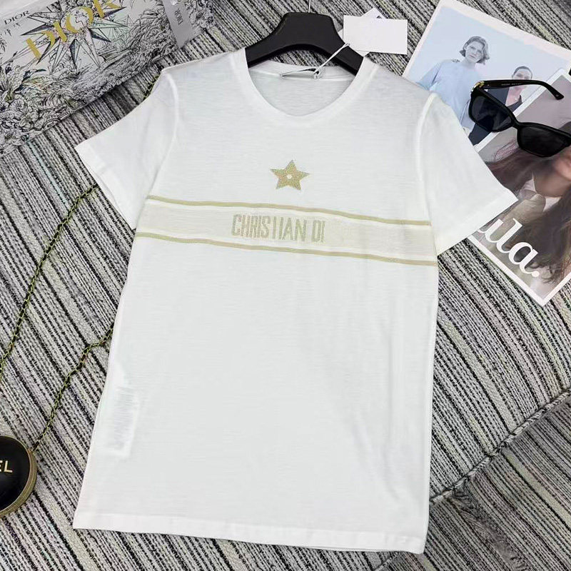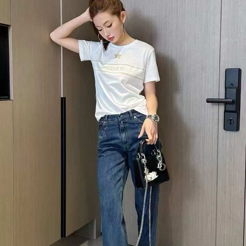 热卖南油高端女装2026早春新款金色刺绣时尚字母小香风短袖T恤衫
