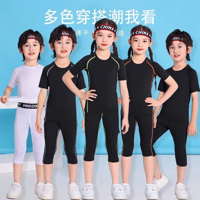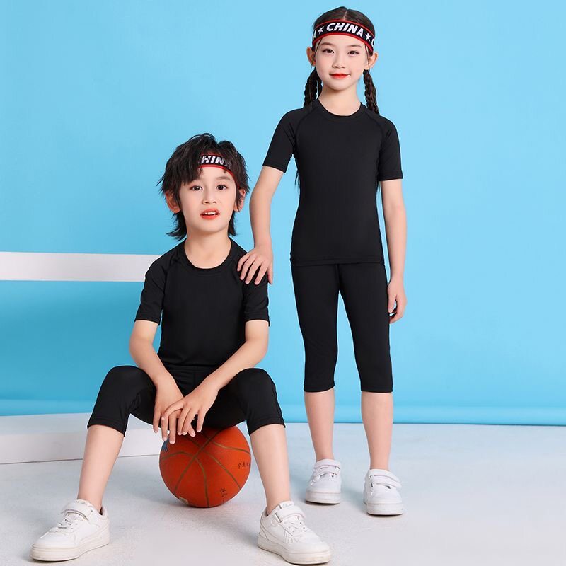 儿童篮球打底速干衣短袖套装七分裤训练服套装紧身衣短袖定制男女