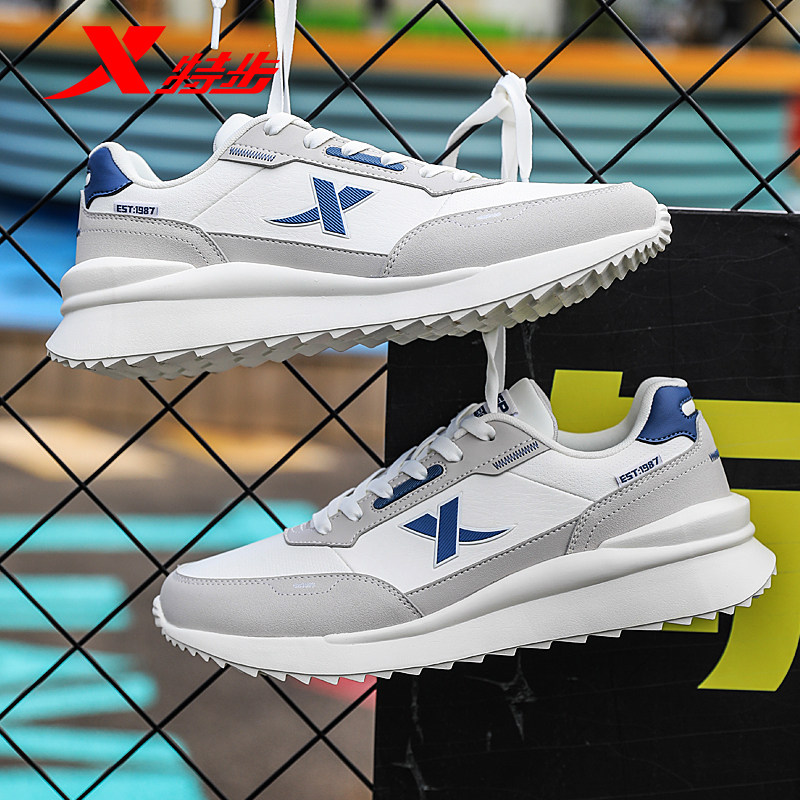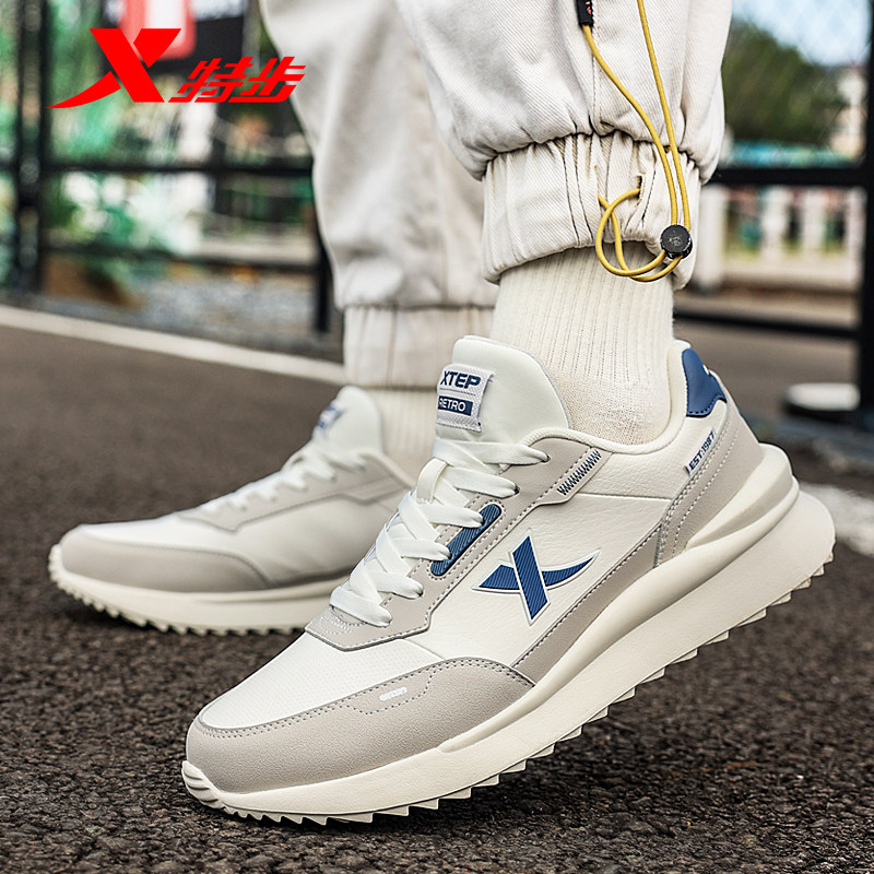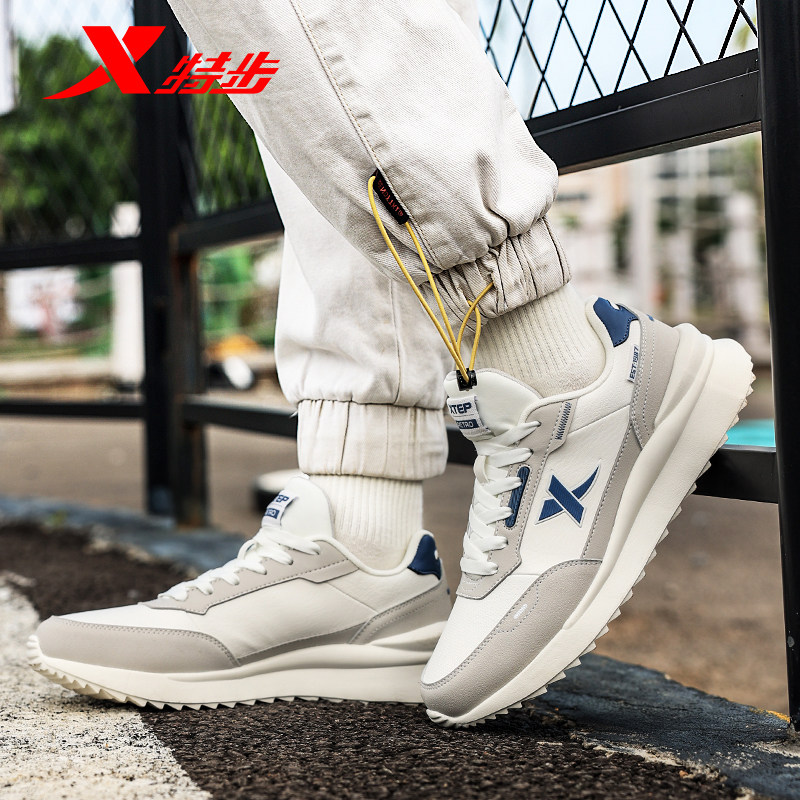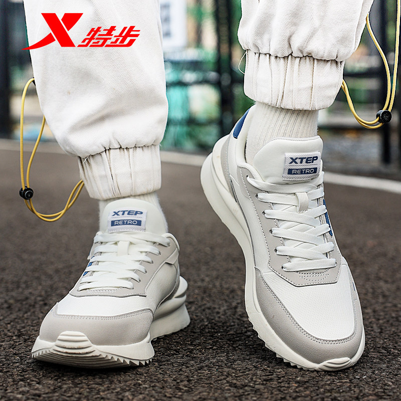 特步男鞋运动鞋男春季新款皮面防水跑步鞋官方正品潮流复古休闲鞋