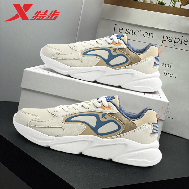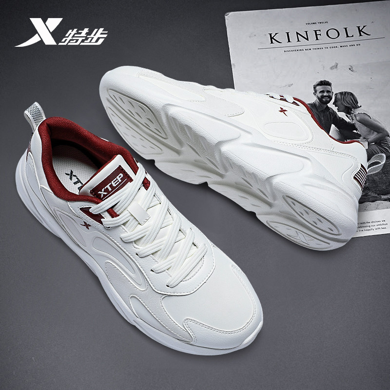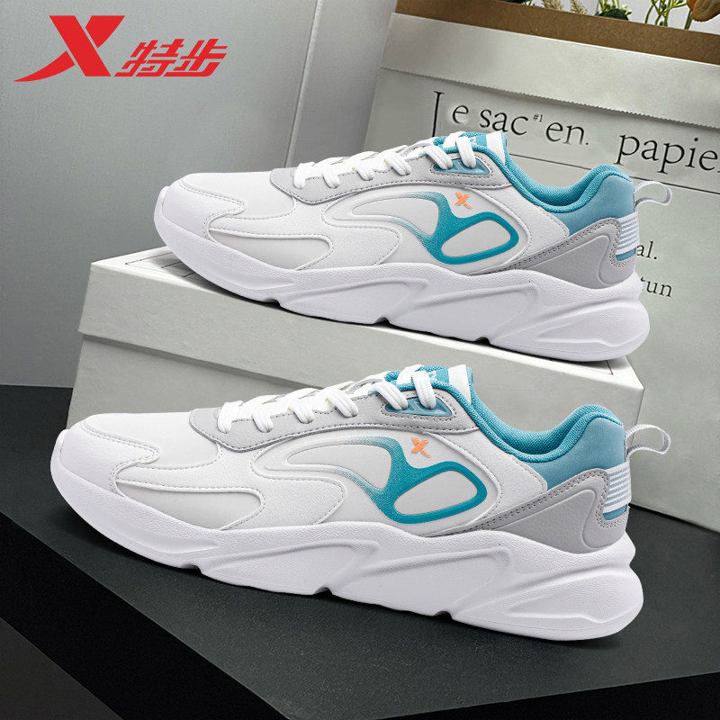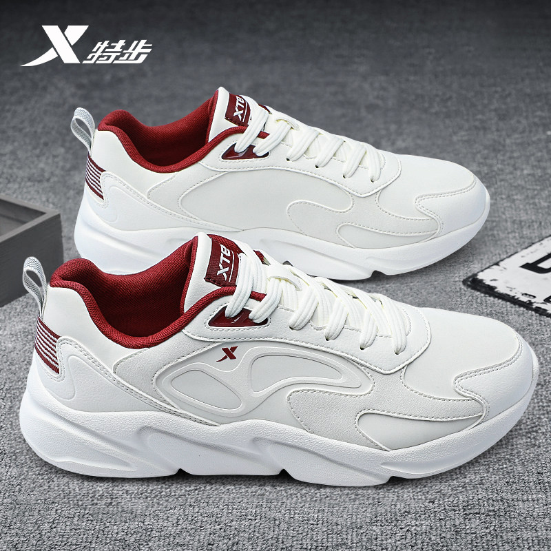特步男鞋休闲运动鞋官方正品2026春季新款皮面防水软底减震跑步鞋