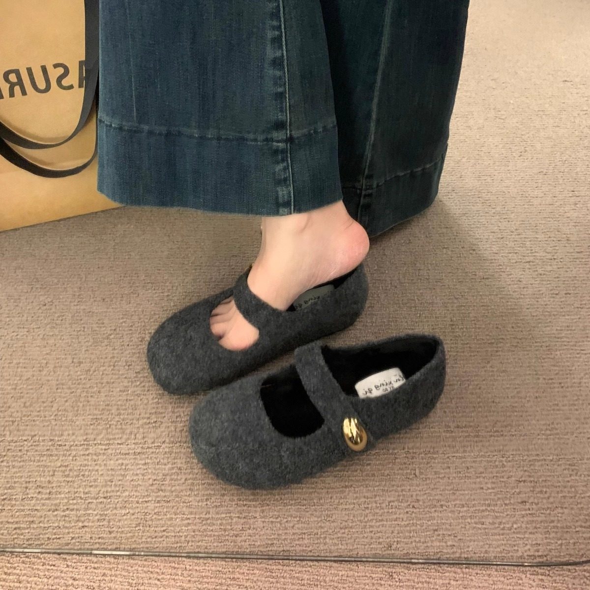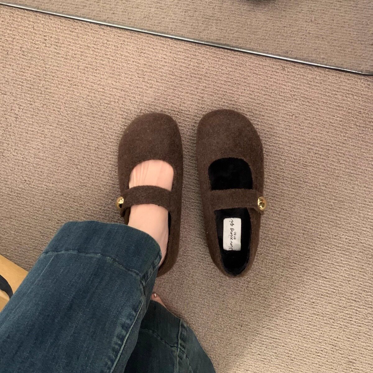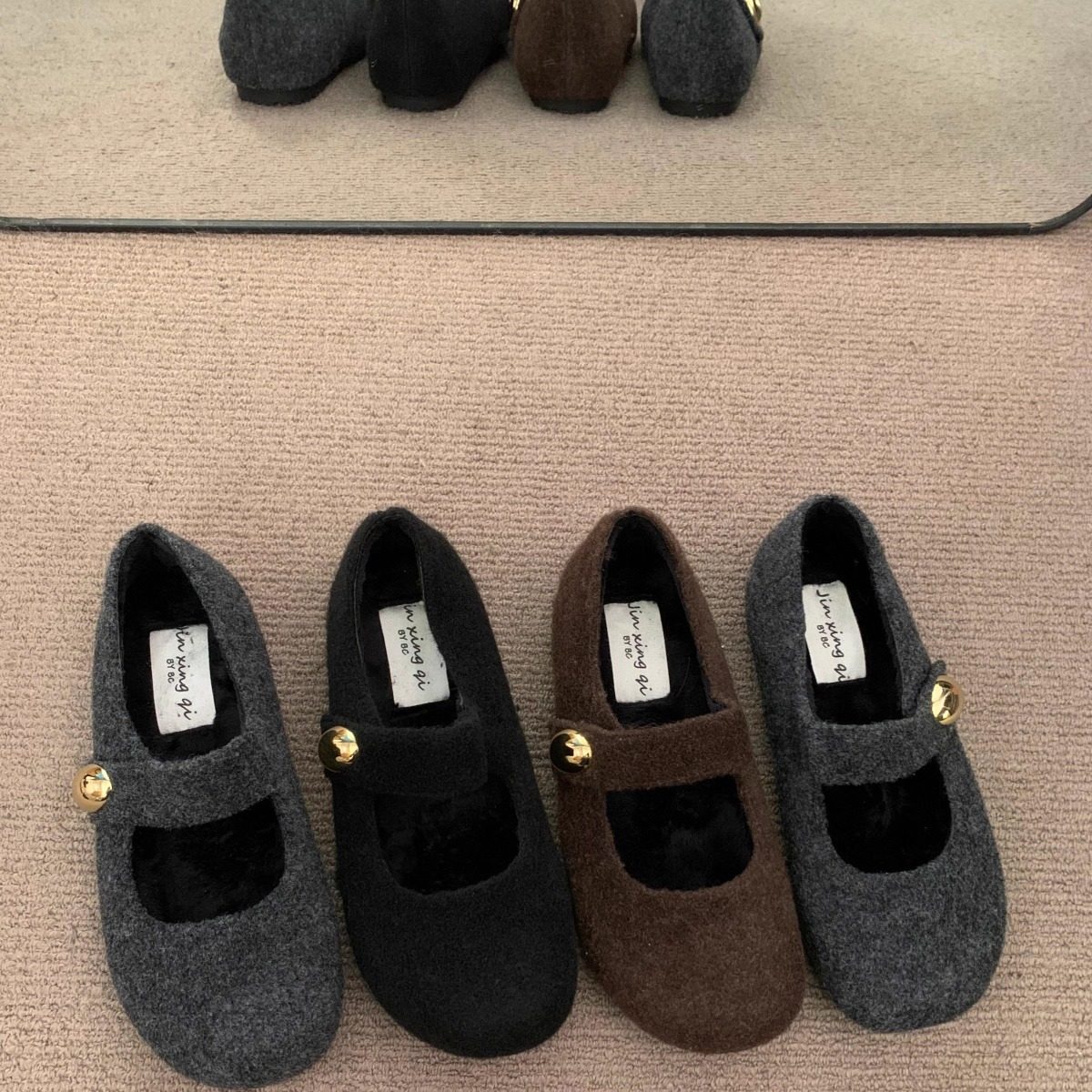 复古内增高灰色尼子一字带玛丽珍勃肯鞋子秋冬保暖棉鞋加绒单鞋女