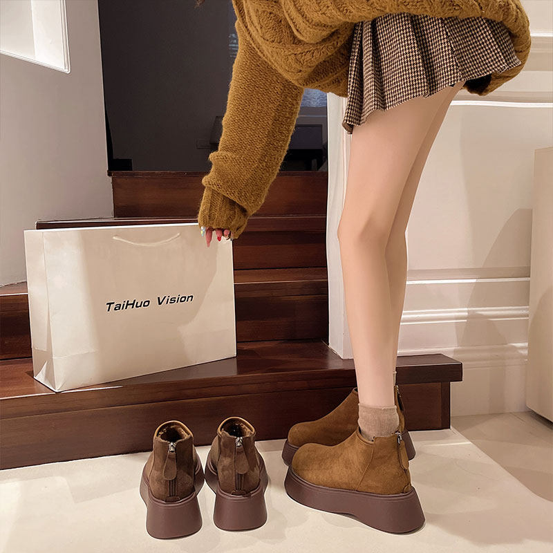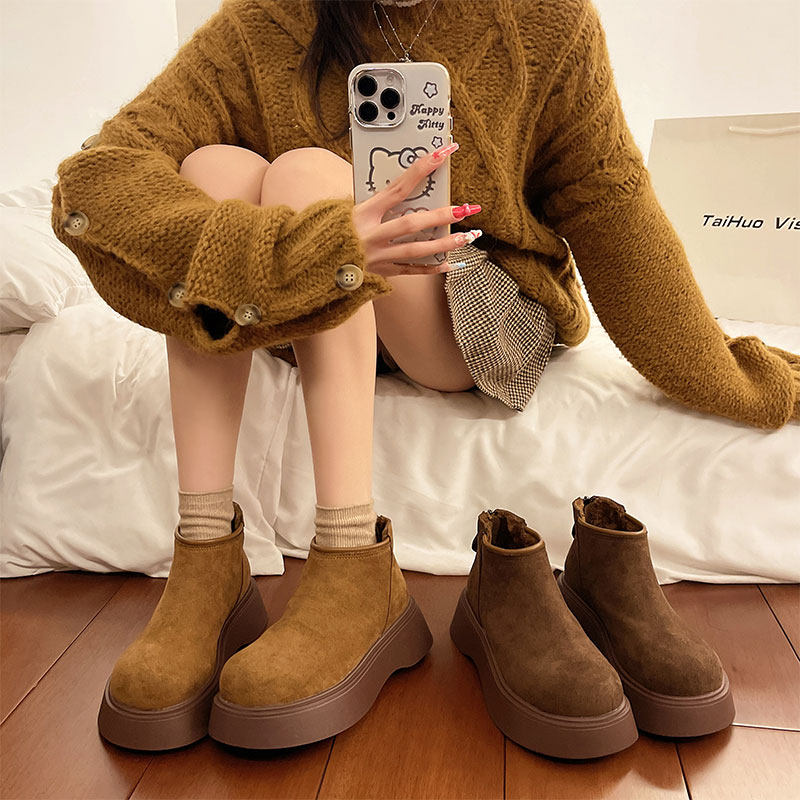 厚底马丁靴女款增高勃肯女鞋2025新款秋冬爆款大头短靴加绒二棉鞋