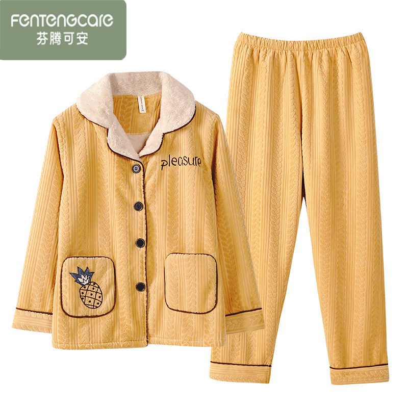 芬腾可安冬季睡衣女珊瑚绒加绒加厚保暖冬天女士法兰绒大码家居服