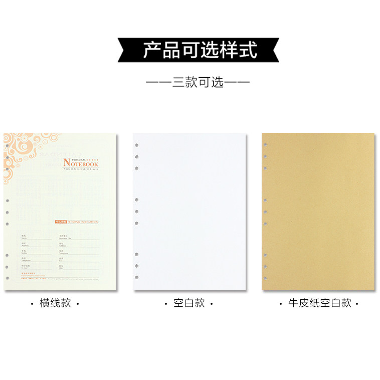 活页笔记本内页 B5/A5/A6/A7道林活页横线替芯6孔牛皮纸空白白纸