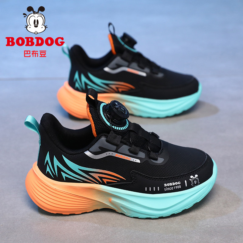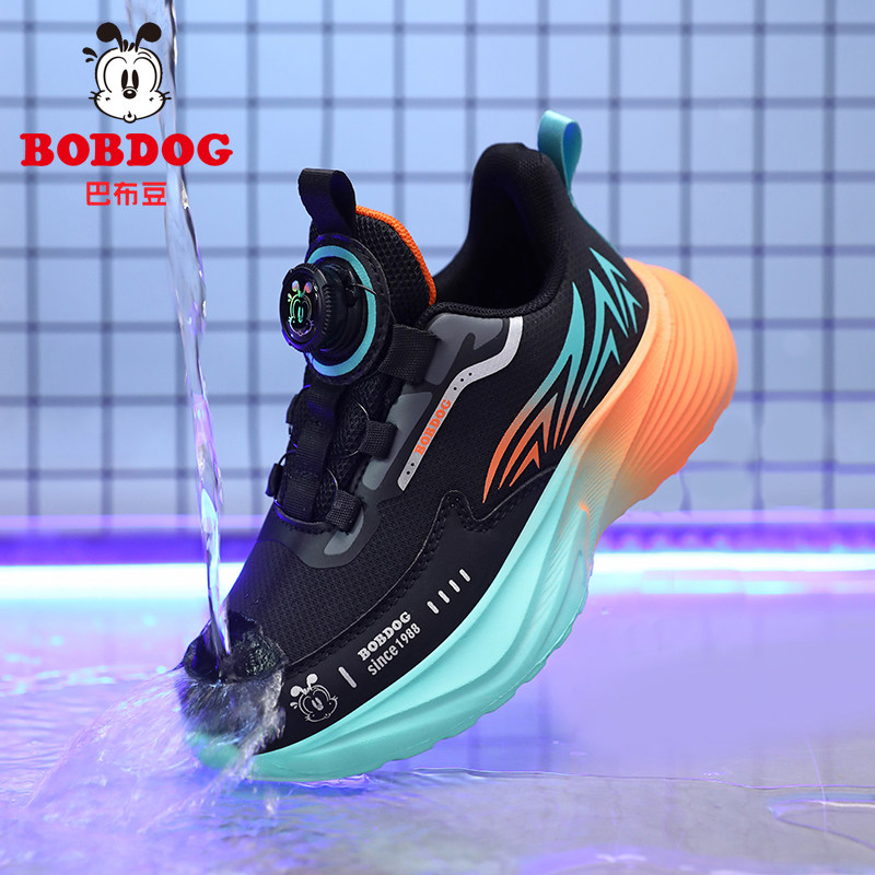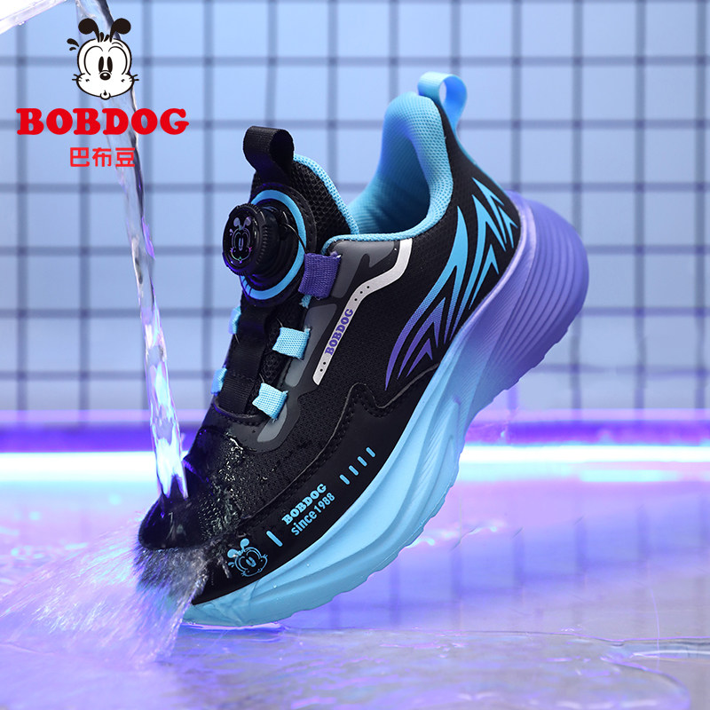 巴布豆男童运动鞋秋季新款儿童鞋子男孩中大童皮面防水碳板跑步鞋