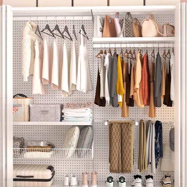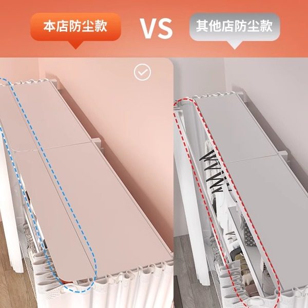 洞洞板简易五金衣柜金属带防尘帘家用卧室开放式衣橱衣帽间少女
