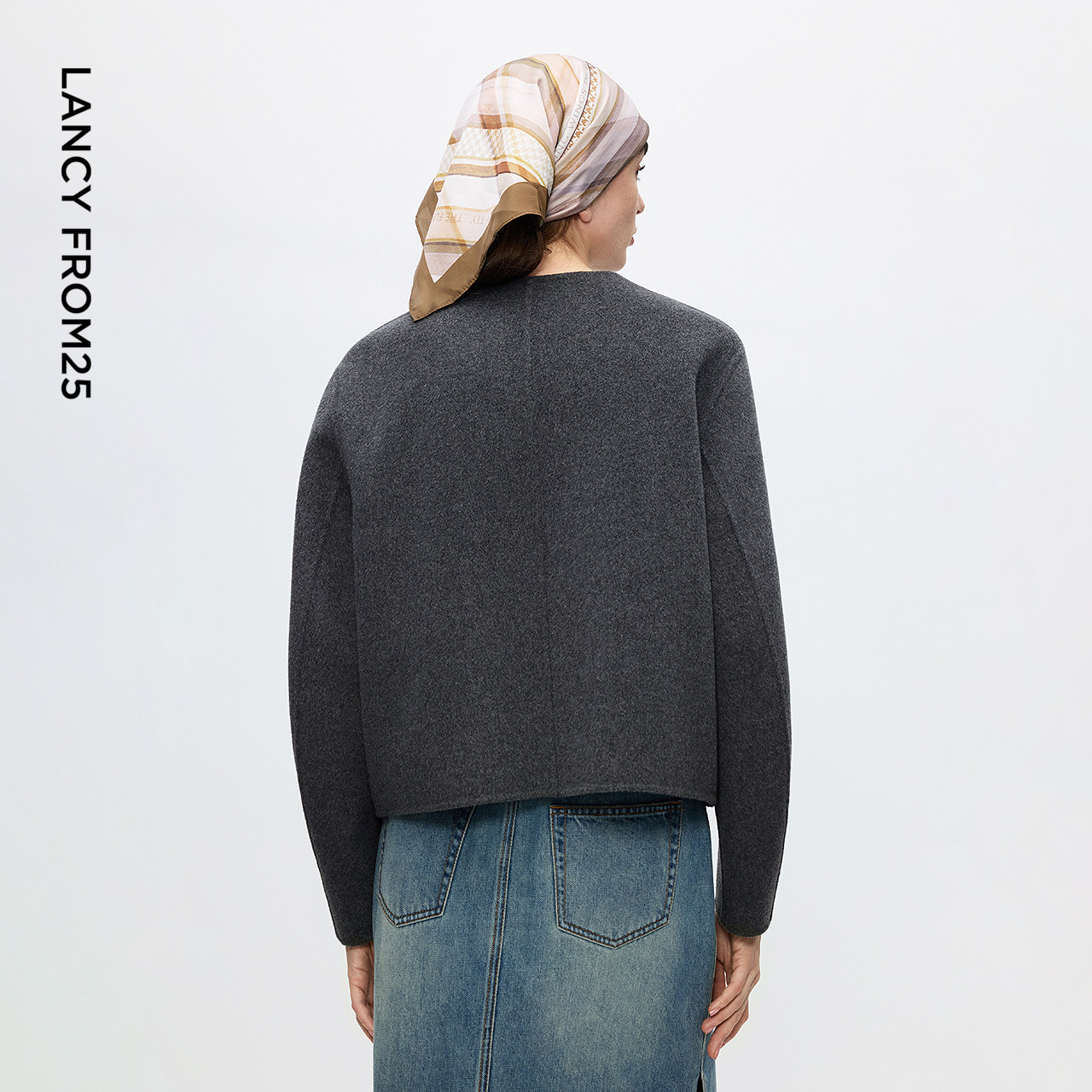 311线报网描述:圆领开襟 短版箱型 舒适纯羊毛