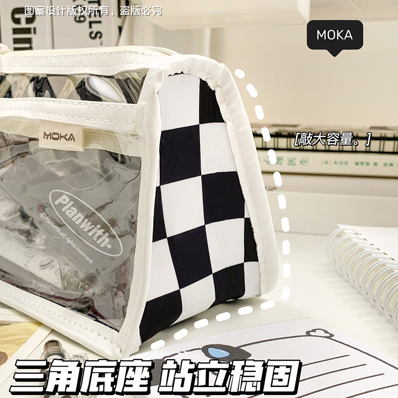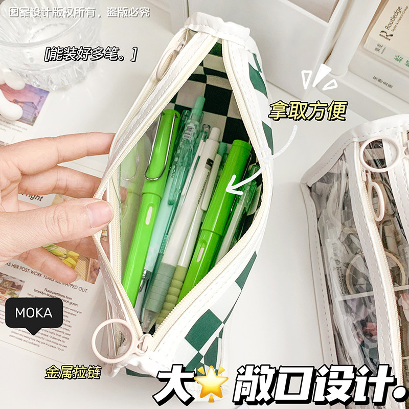 棋盘格笔袋女生高颜值透明文具袋初中学生简约网红ins风铅笔袋女孩版小学生2023年新款大容量黑白格子六年级