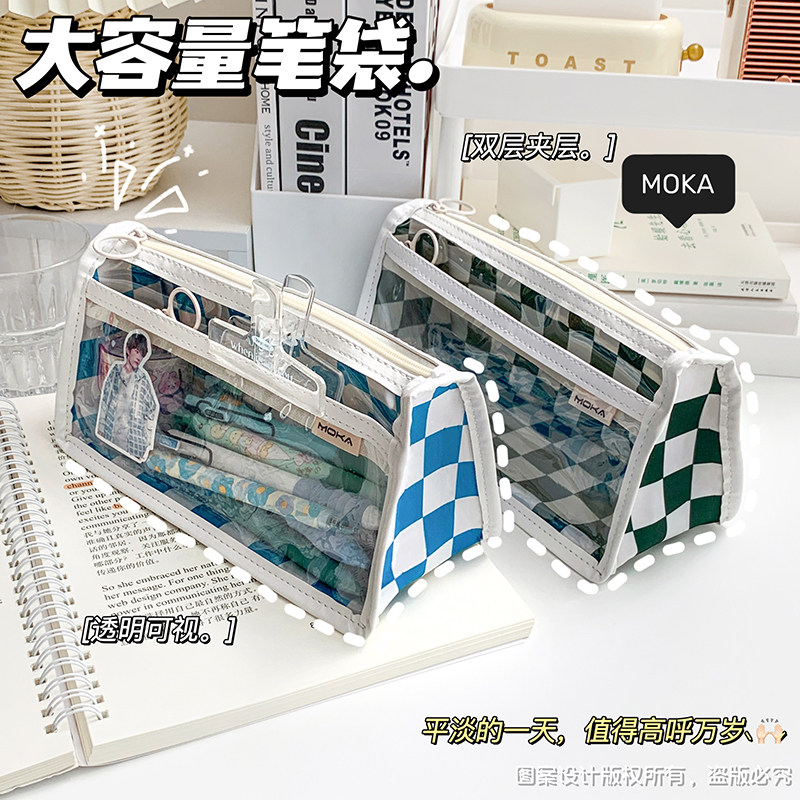 311线报网描述:小红书同款棋盘格大容量透明笔袋
