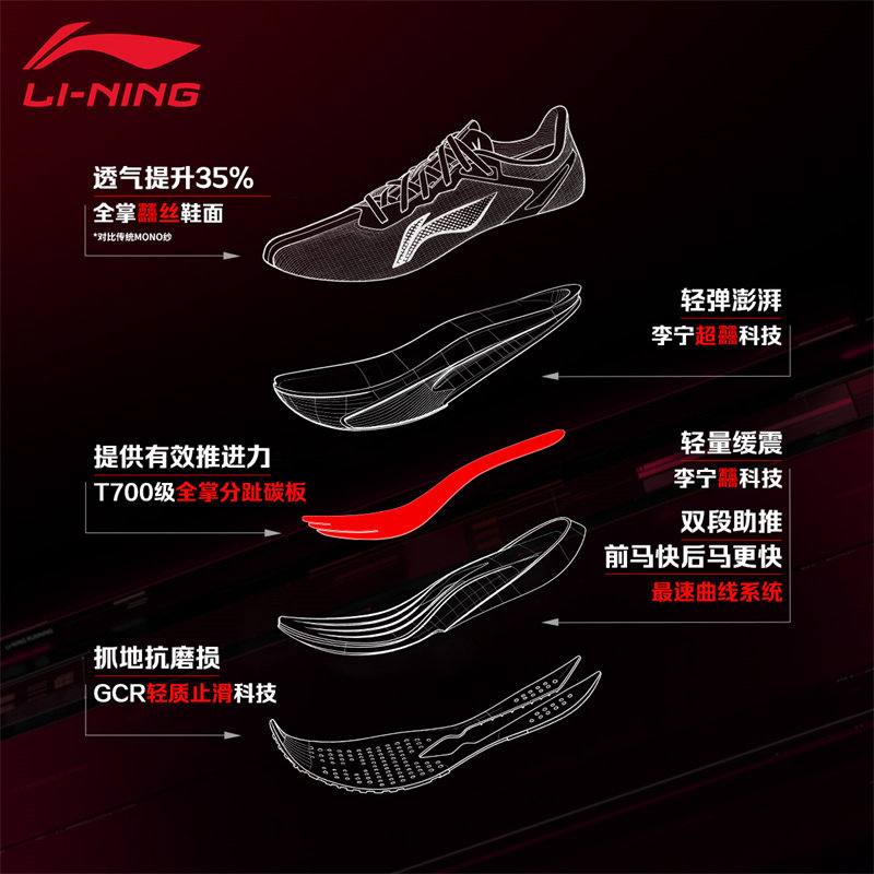 李宁飞电6CHALLENGER碳板跑步鞋男款䨻丝透气防滑运动鞋轻量跑鞋