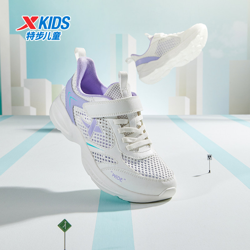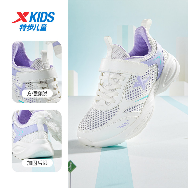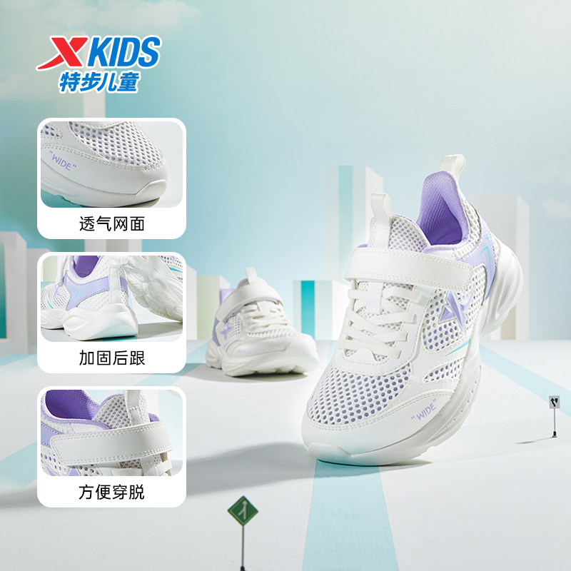 特步儿童运动鞋夏季透气网面男女童魔术贴减震防滑跑步鞋轻便