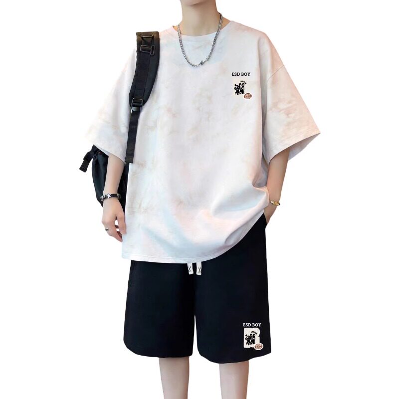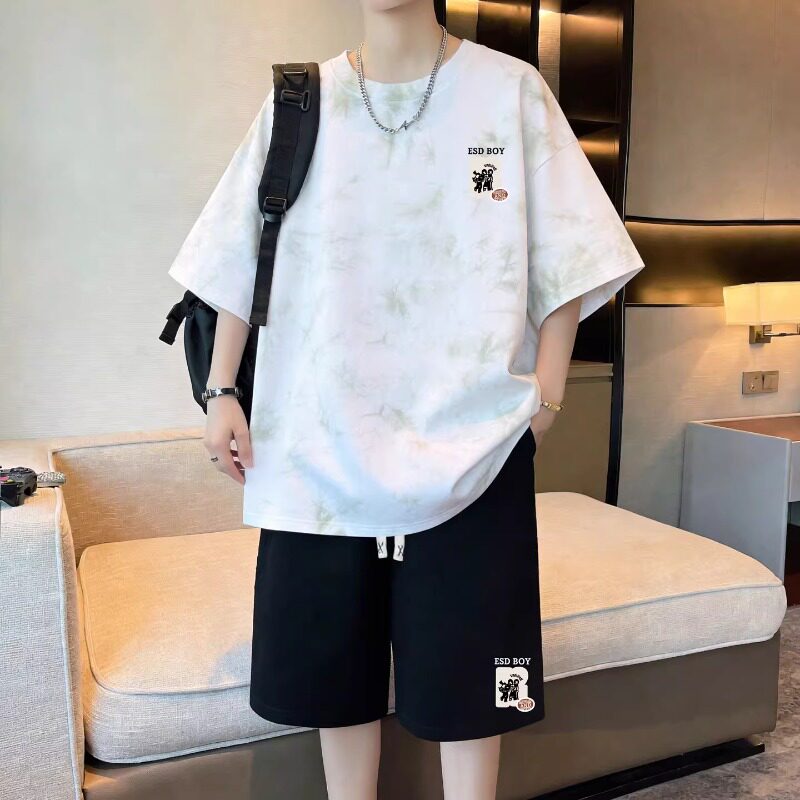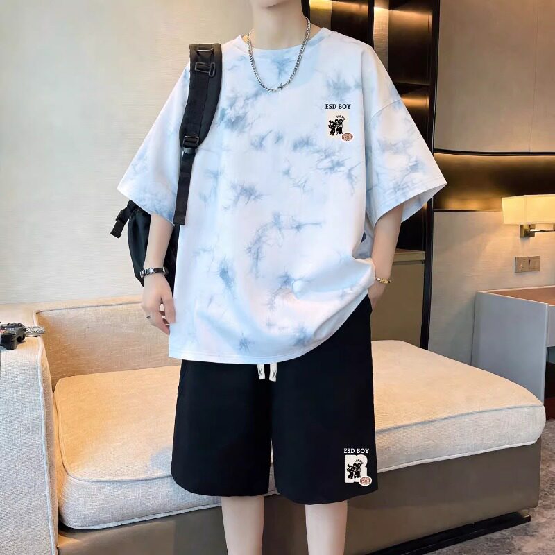 夏季青少年纯棉短袖t恤男孩初中高中学生帅气大童休闲运动服套装