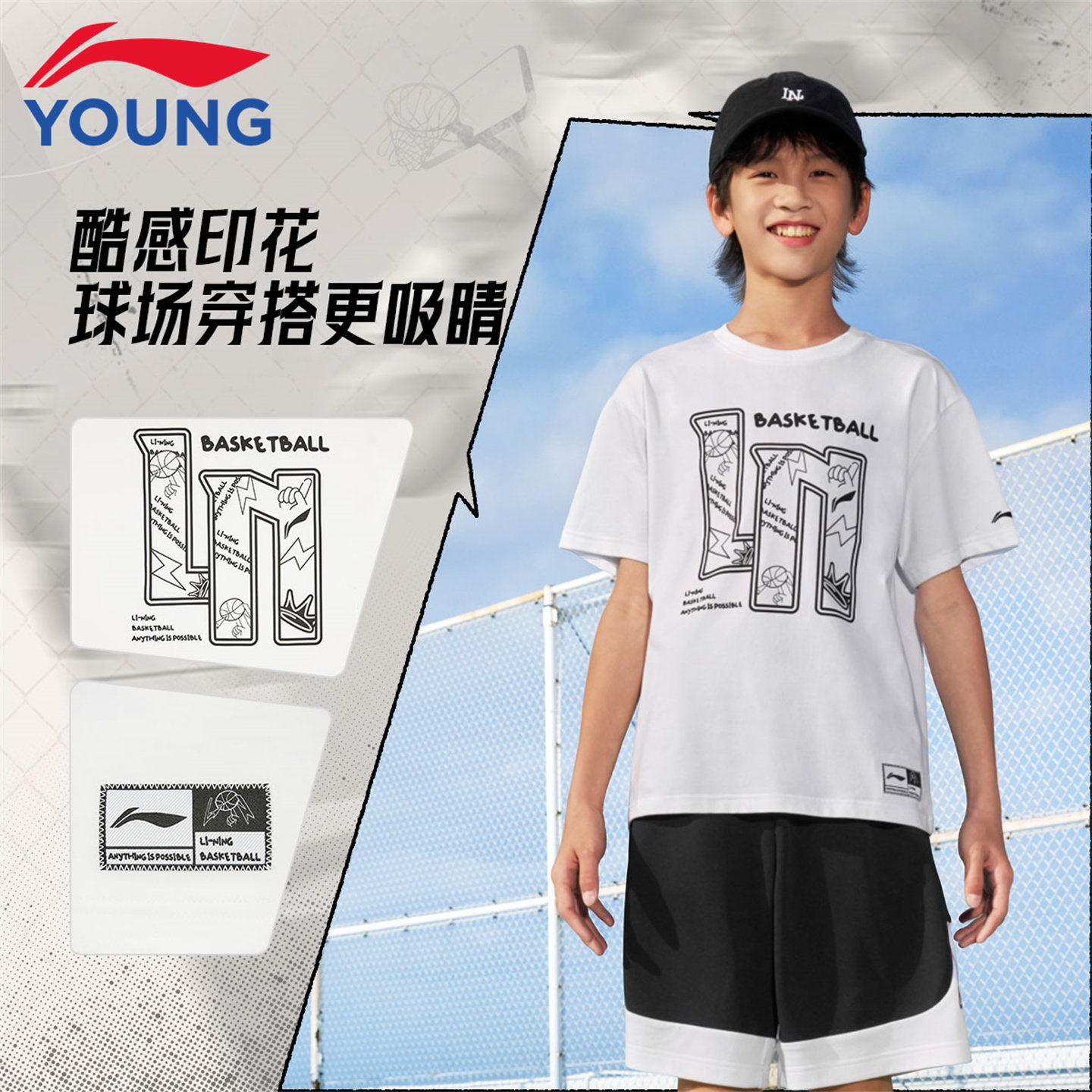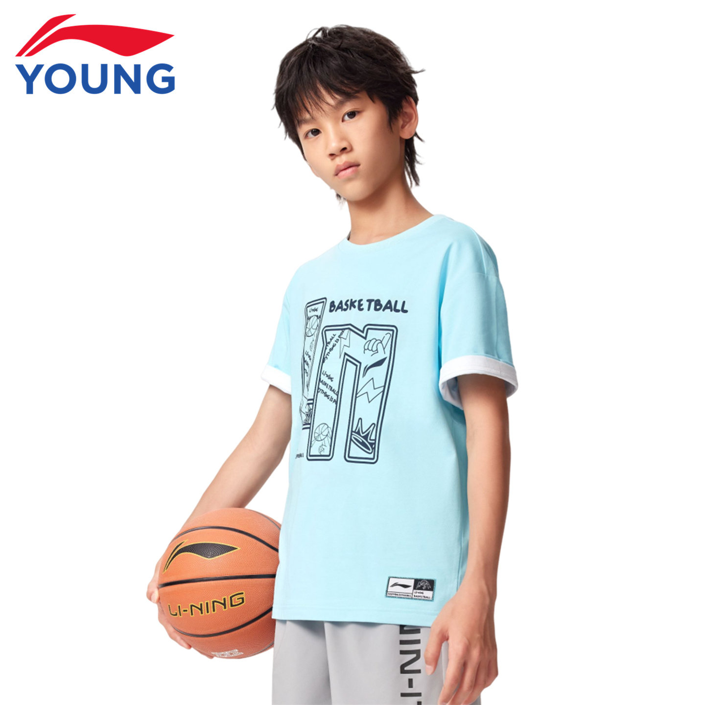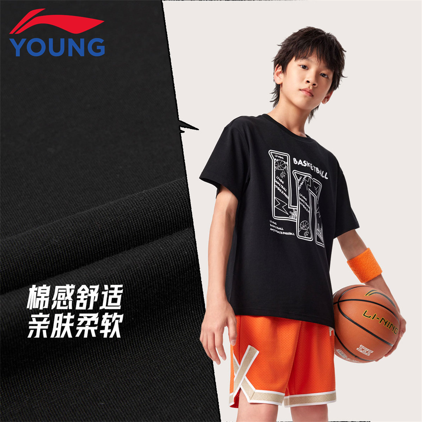 李宁儿童T恤短袖男童26新款夏季棉感透气舒适青少年休闲运动上衣