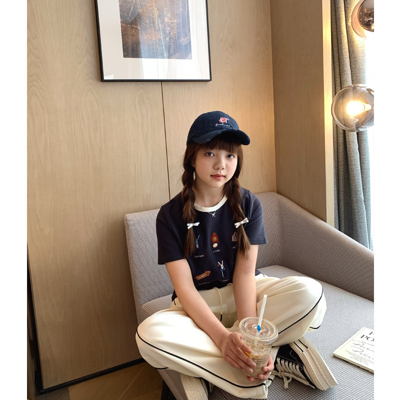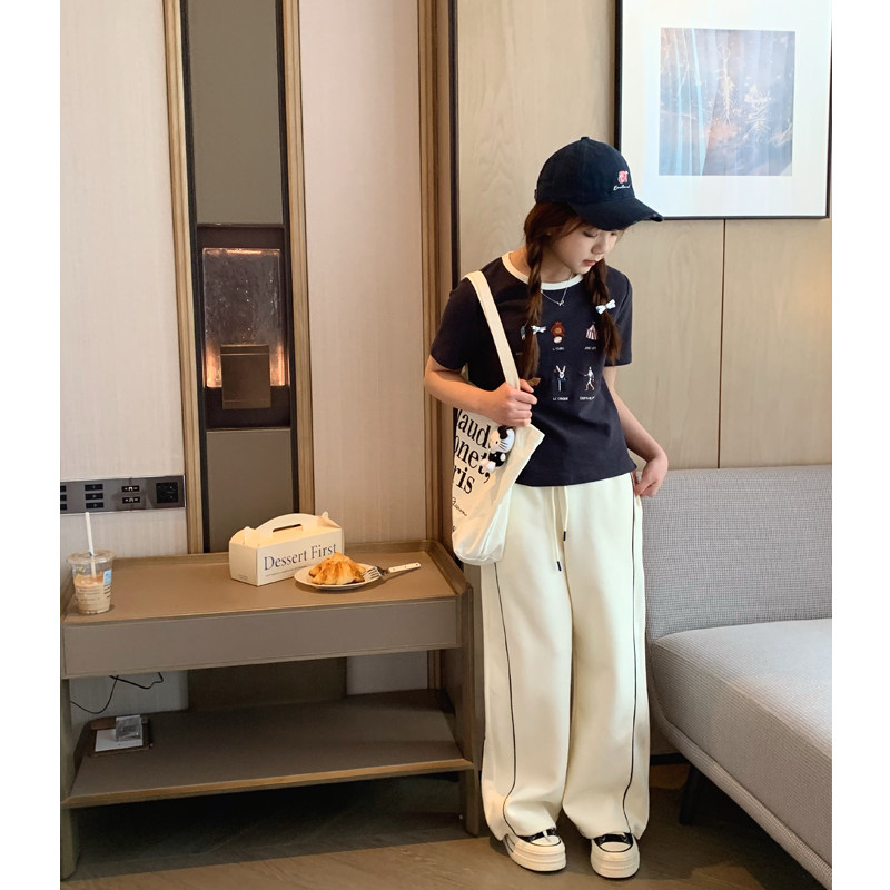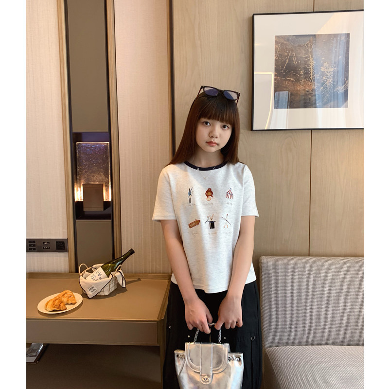 女大童韩版刺绣短款T恤2025春夏季新款初中生显瘦拼色短袖潮T上衣