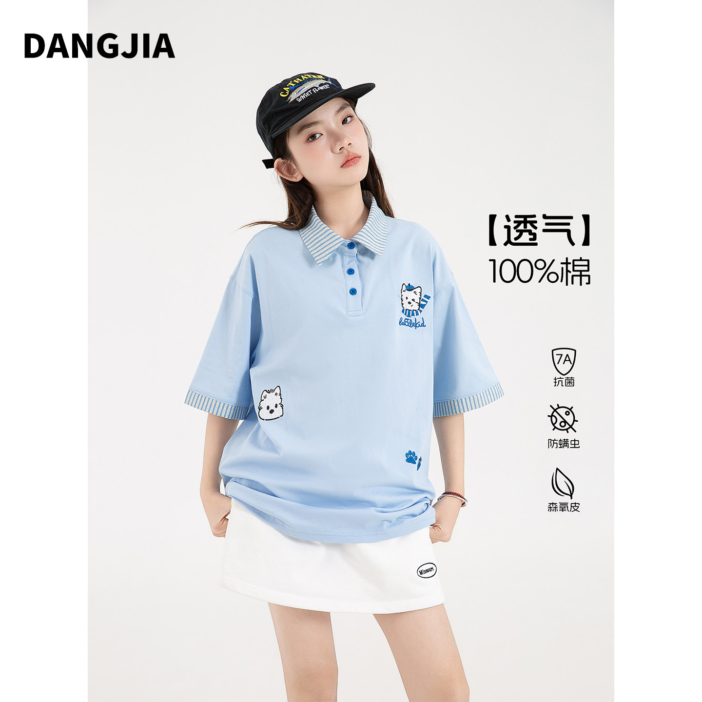 女大童polo衫2026新款夏装短袖t恤上衣学院风刺绣初中生女孩纯棉