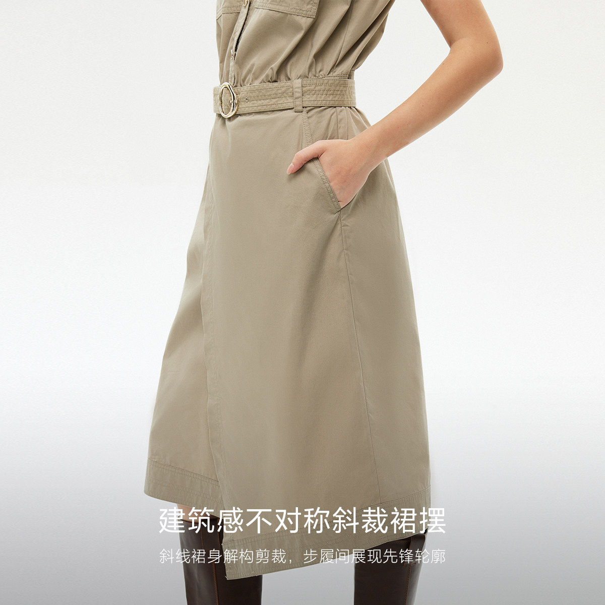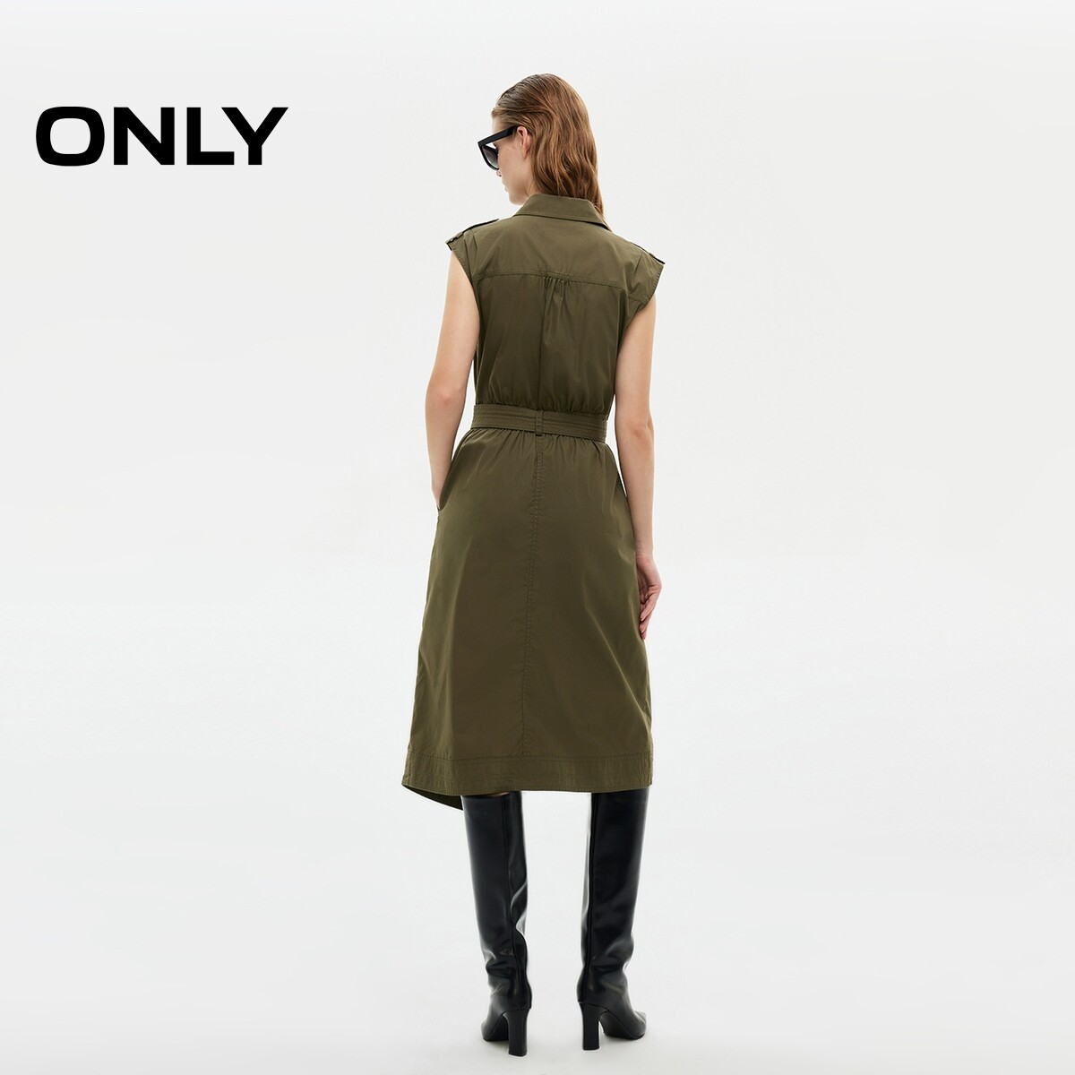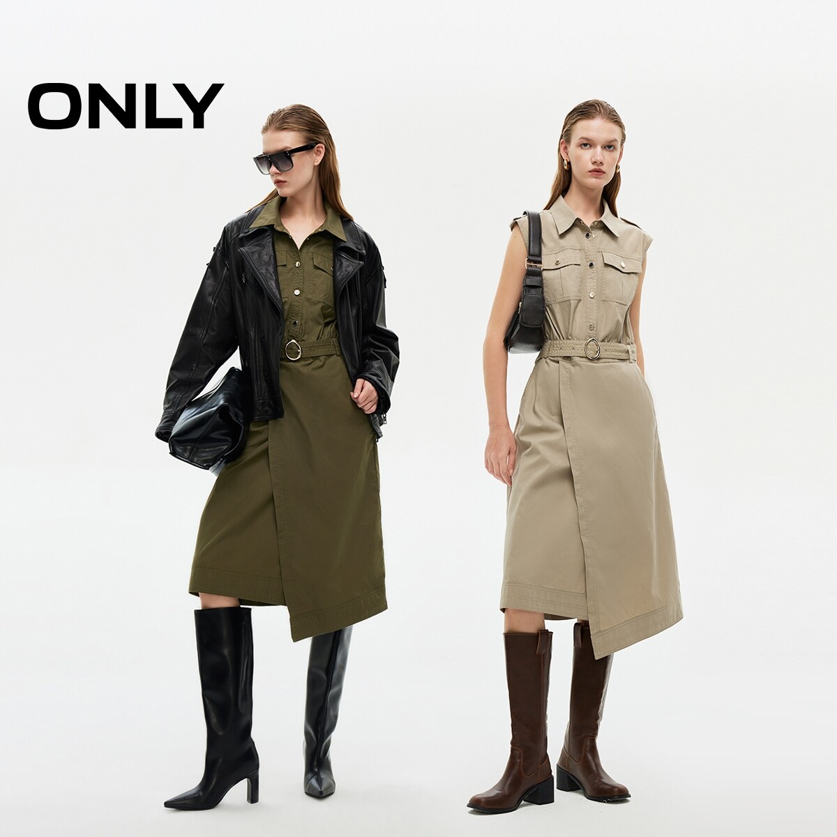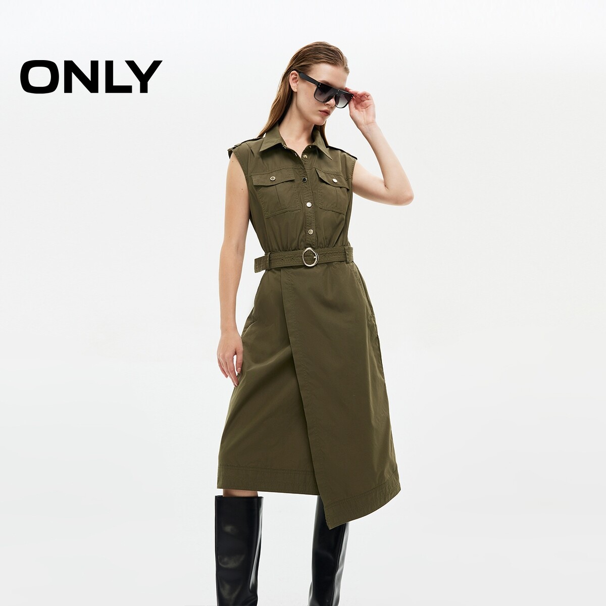 ONLY2026春季新款酷飒工装风收腰裙子无袖纯色A字中长裙连衣裙女