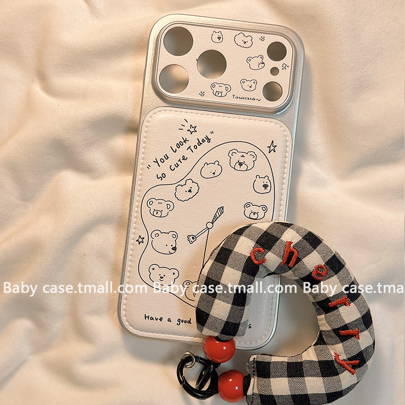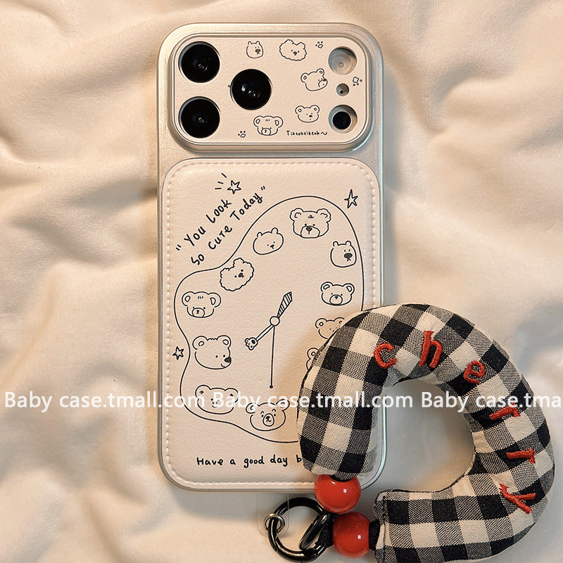 北比ins简约线条小熊时钟适用苹果17pro手机壳iphone16promax新款15腕带挂绳17皮质14大视窗15pm卡通16全包女