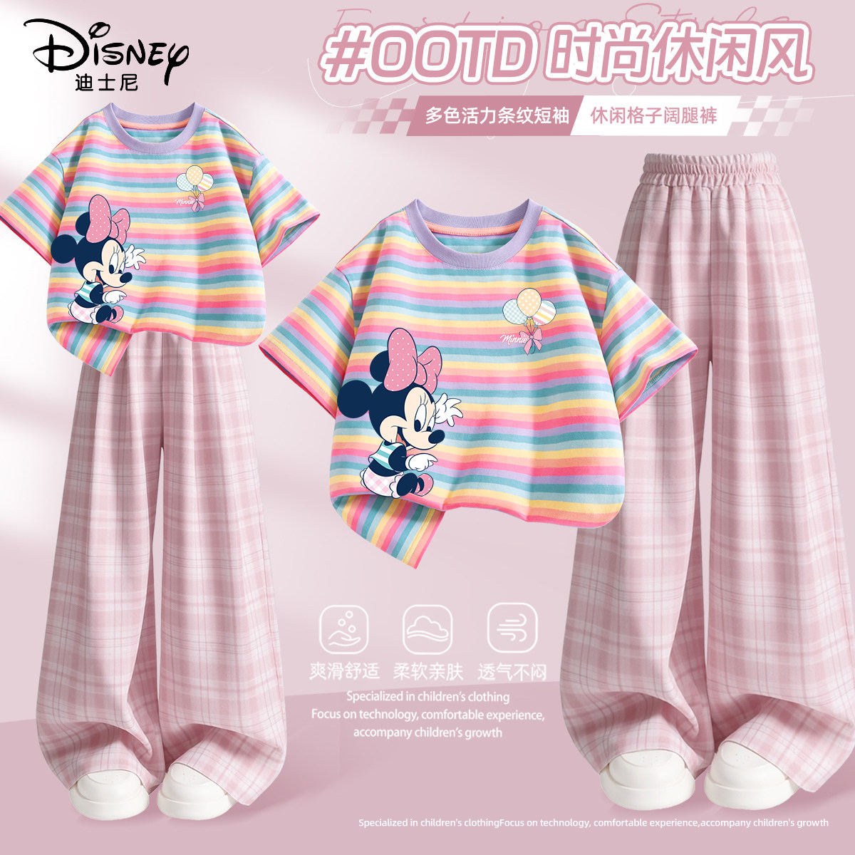迪士尼女童夏套装2026新款夏季薄款纯棉短袖休闲透气儿童夏装裤子