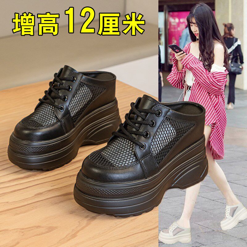 夏天拖鞋女款外穿时尚不累脚网面无后跟单鞋小个子12cm内增高半拖