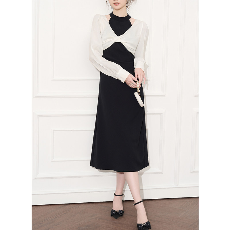 长袖连衣裙女2026新款春春款法式气质修身显瘦设计感小众长裙裙子