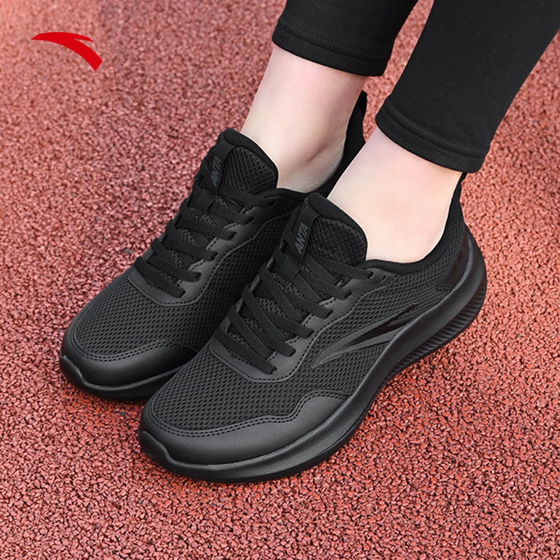 安踏晴空黑色运动鞋女不累脚女鞋透气新款品牌清仓2026软底跑步鞋