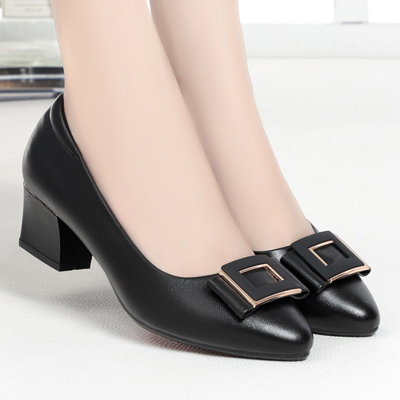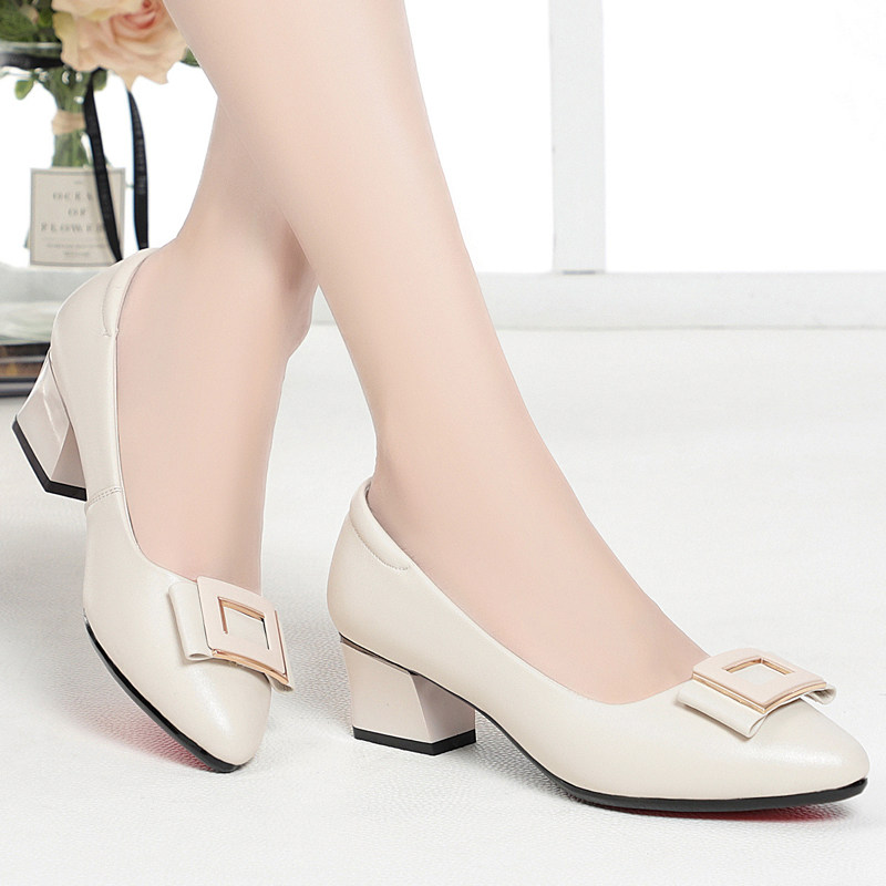意尔康2026春季新款女单鞋正品真皮女鞋时尚休闲中跟粗跟软牛皮鞋