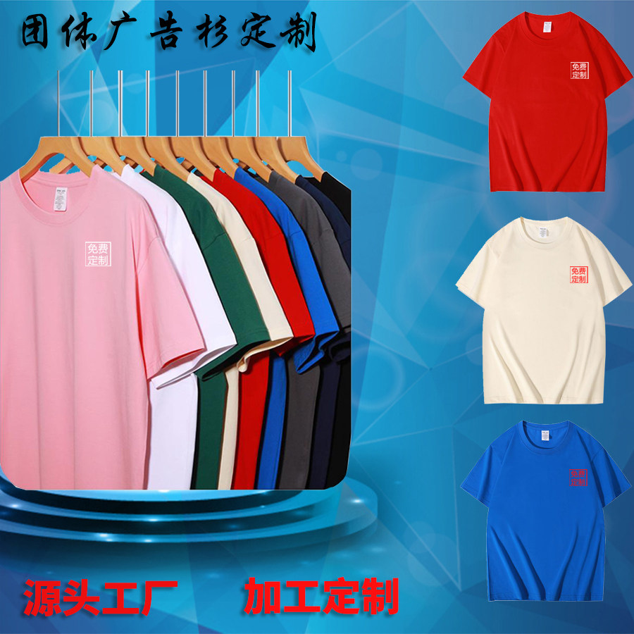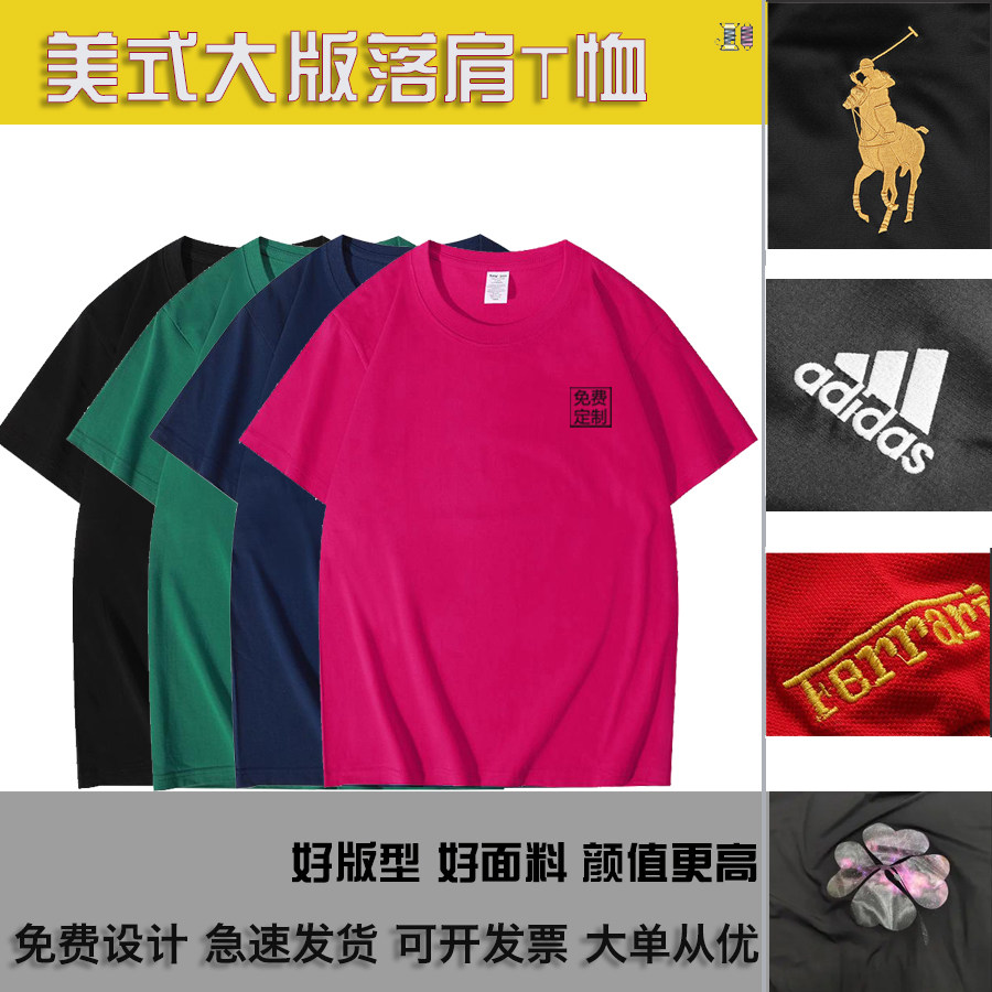 纯棉t恤定制工作服印logo落肩圆领短袖班服聚会文化衫重磅工衣服